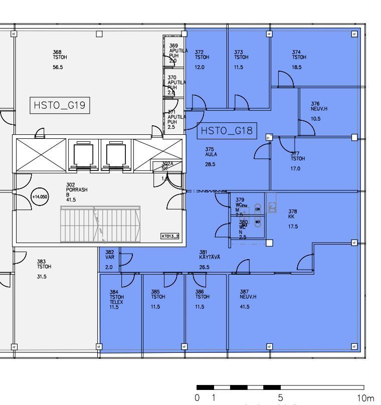 Tila koostuu erikokoisista huoneista, kahdesta neuvotteluhuoneesta, keittiöstä ja sosiaalitiloista. Tila on muokattavissa käyttäjälle sopivaksi.