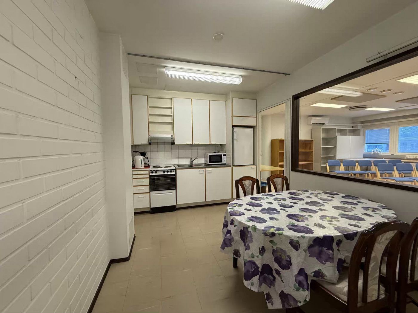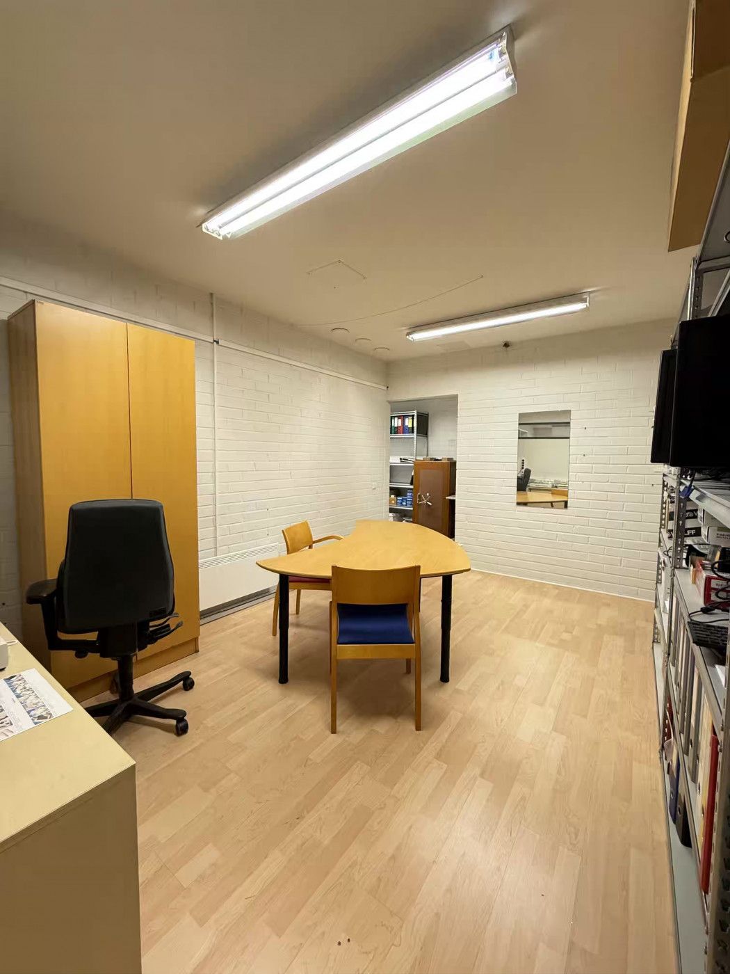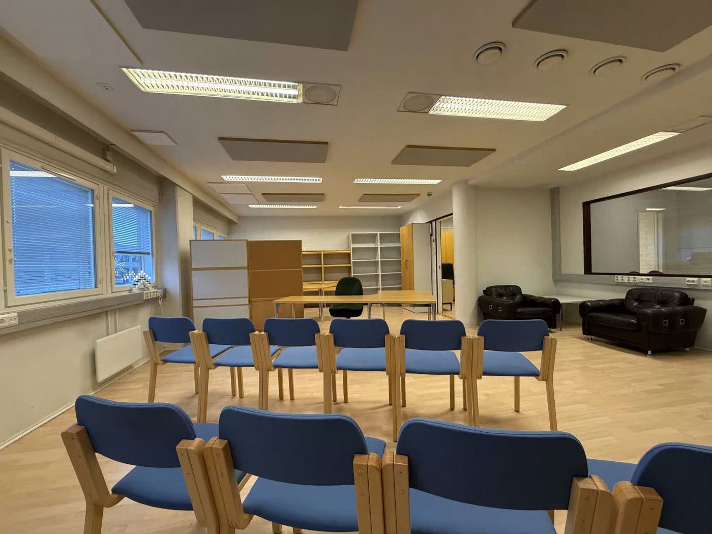 Huoneisto on pääosin avointa tilaa, jonka lisäksi tilassa on keittiö, neuvotteluhuone, varastotilaa, sisäänkäyntiaula ja wc. Tila soveltuu hyvin toimistokäyttöön. Huoneiston on mahdollista yhdistää viereiseen 140 m2 tilaan.