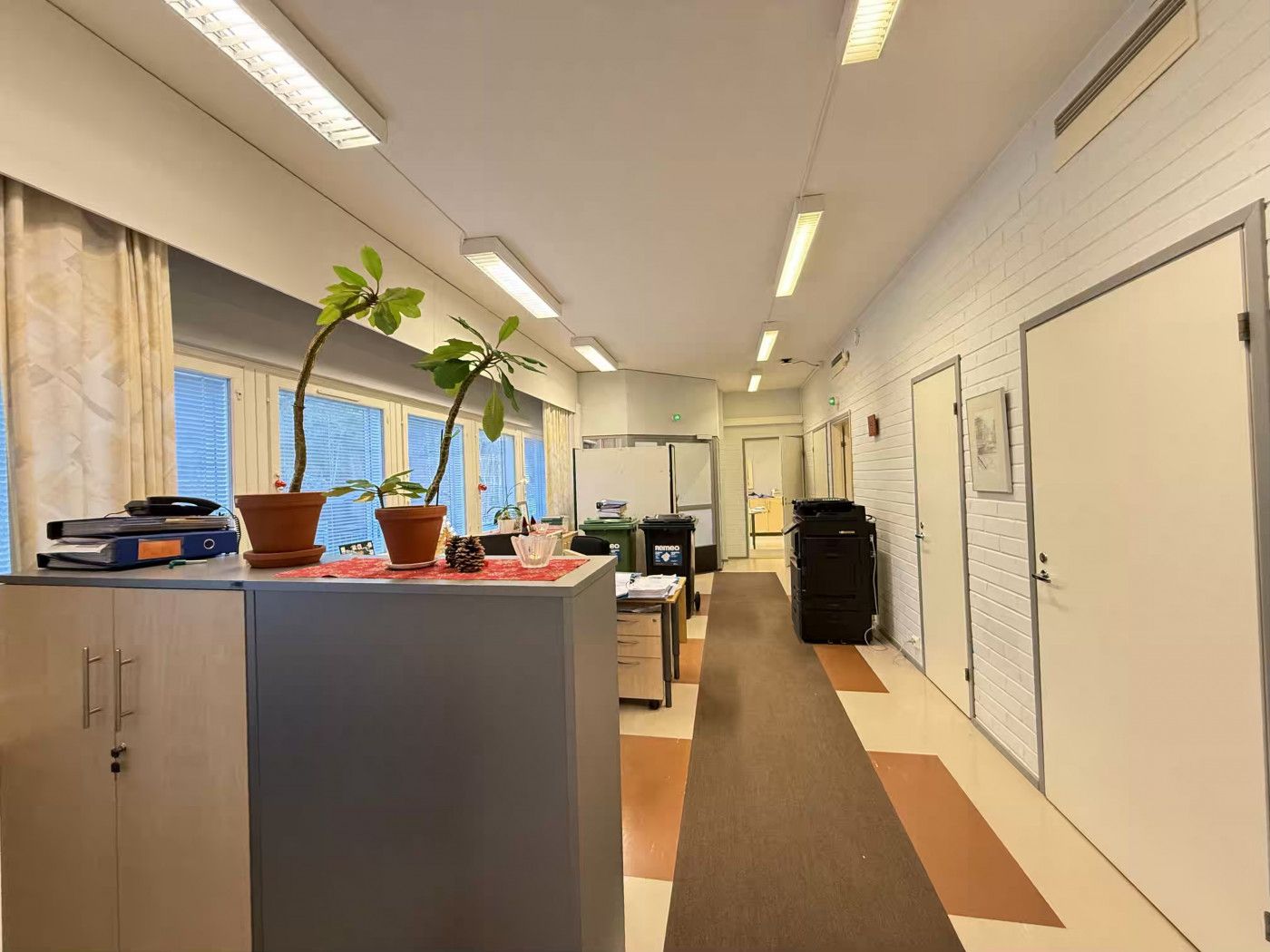 Huoneisto on pääosin avointa tilaa, jonka lisäksi tilassa on keittiö, kaksi erillistä toimistohuonetta ja wc. Tila soveltuu hyvin toimistokäyttöön. Huoneiston on mahdollista yhdistää viereiseen 133 m2 tilaan.