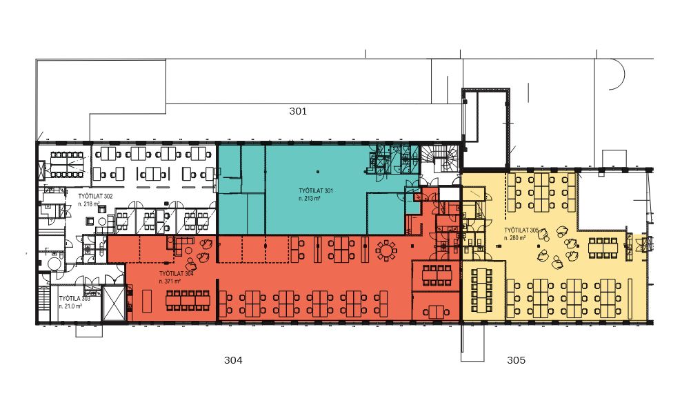 Hyväkuntoinen tila jossa normaali toimistoa korkeampi huonekorkeus. Mahdollisuus laajentaa ja saada helposti yhteys tavarahissiin.
