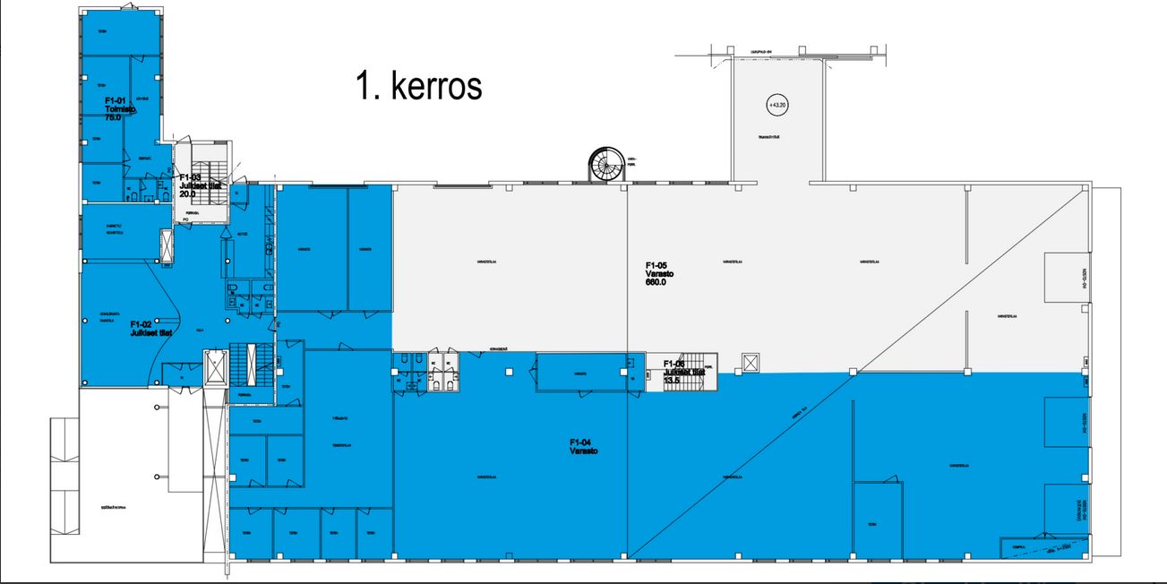 Tila koostuu kahdesta tilasta, varasto 1260m2, sekä toimisto 140m2.