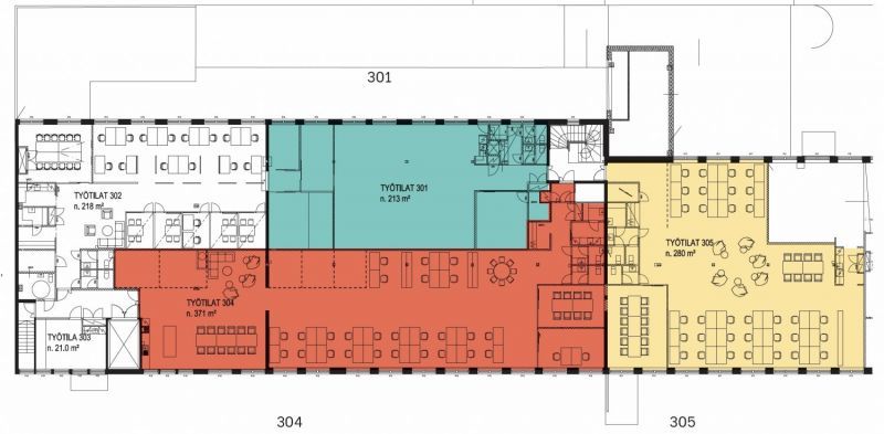 Tilat ovat kauttaaltaan saneerattuja ja siistejä, ikkunat ovat suuria ja tilat erottuvat edukseen verrattuna perinteiseen toimistoon.