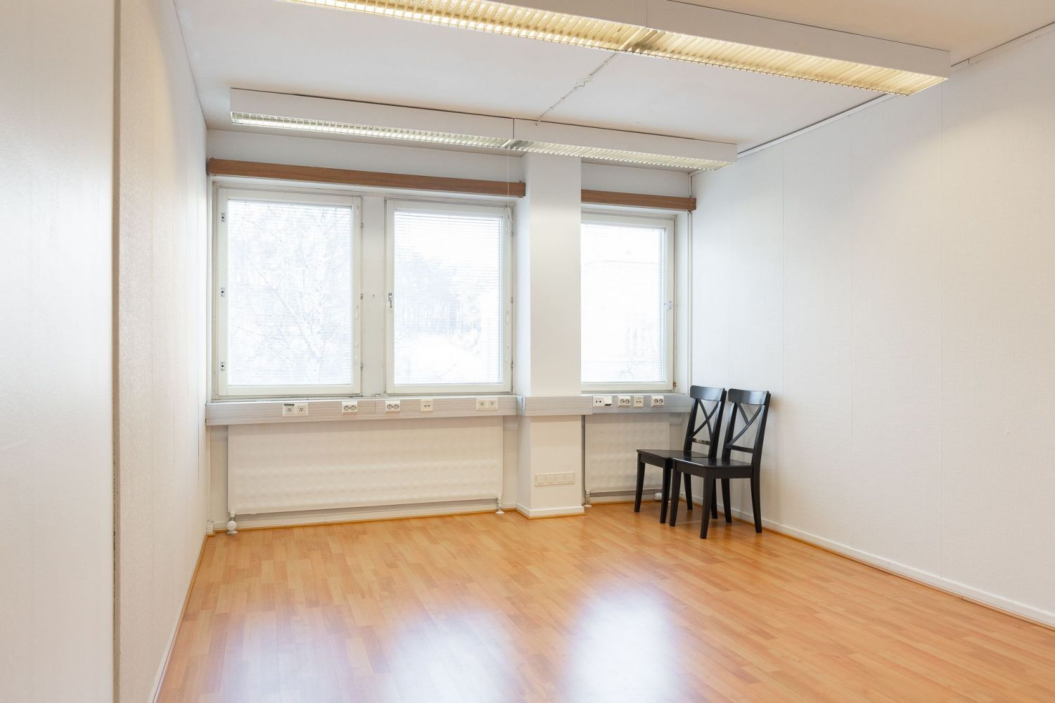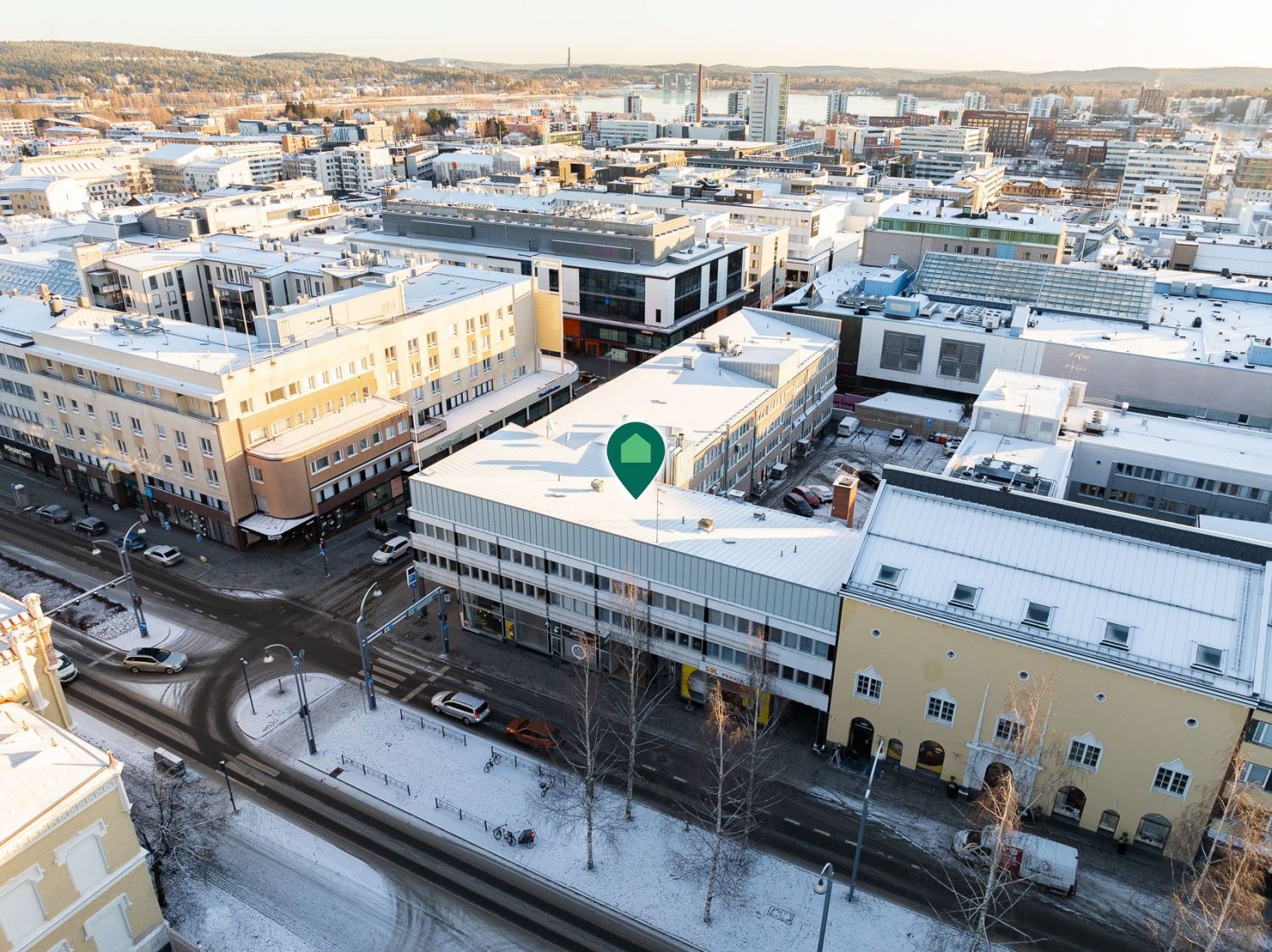 Sijainnin puolesta lähietäisyydeltä löytyy kaikki palvelut, kuten kahvilat, kaupat, ravintolat, pysäköintihallit, kuntosalit. Mitä ikinä keksitkään työpäiväsi aikana tarvita, se löytyy nurkan takaa. Kulkuyhteydet toimivat keskustaan erinomaisesti ja yhtiöltä vuokrattavissa myös autopaikkoja. Lisäksi postilaatikot ja toimiva tavarahissi rakennuksessa.