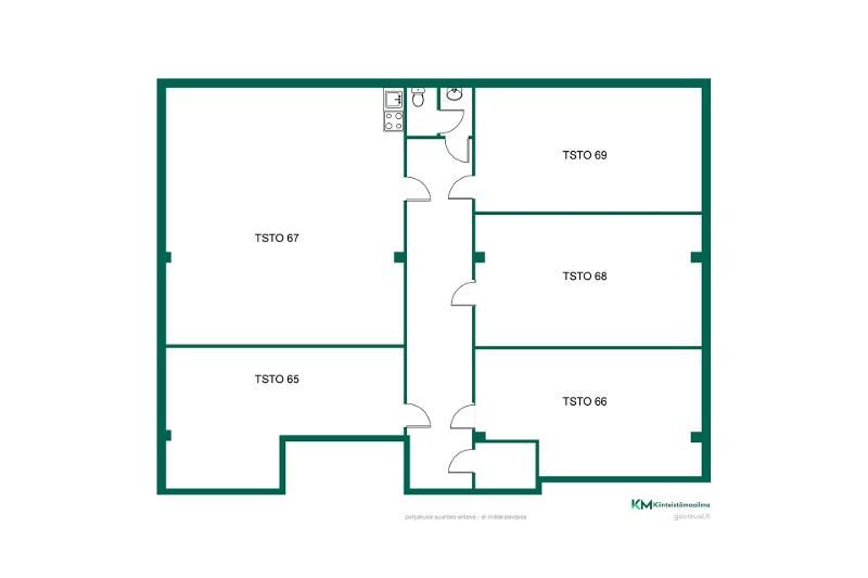 Huoneiden neliömäärät 65 17,8m2, 66 18,5m2, 67 39,9m2, 68 20,1m2 ja 69 18,5m2. Selkeä pohjaratkaisu ja sijainti rakennuksessa tekee tästä helppo käyttöisen tilan yrityksesi tarpeisiin. Lisäksi oma wc ja minikeittiö lisää käyttömukavuutta. Yhteiskäytössä olevissa tiloissa lisää WC tiloja, sekä keittiö- ja taukotila.