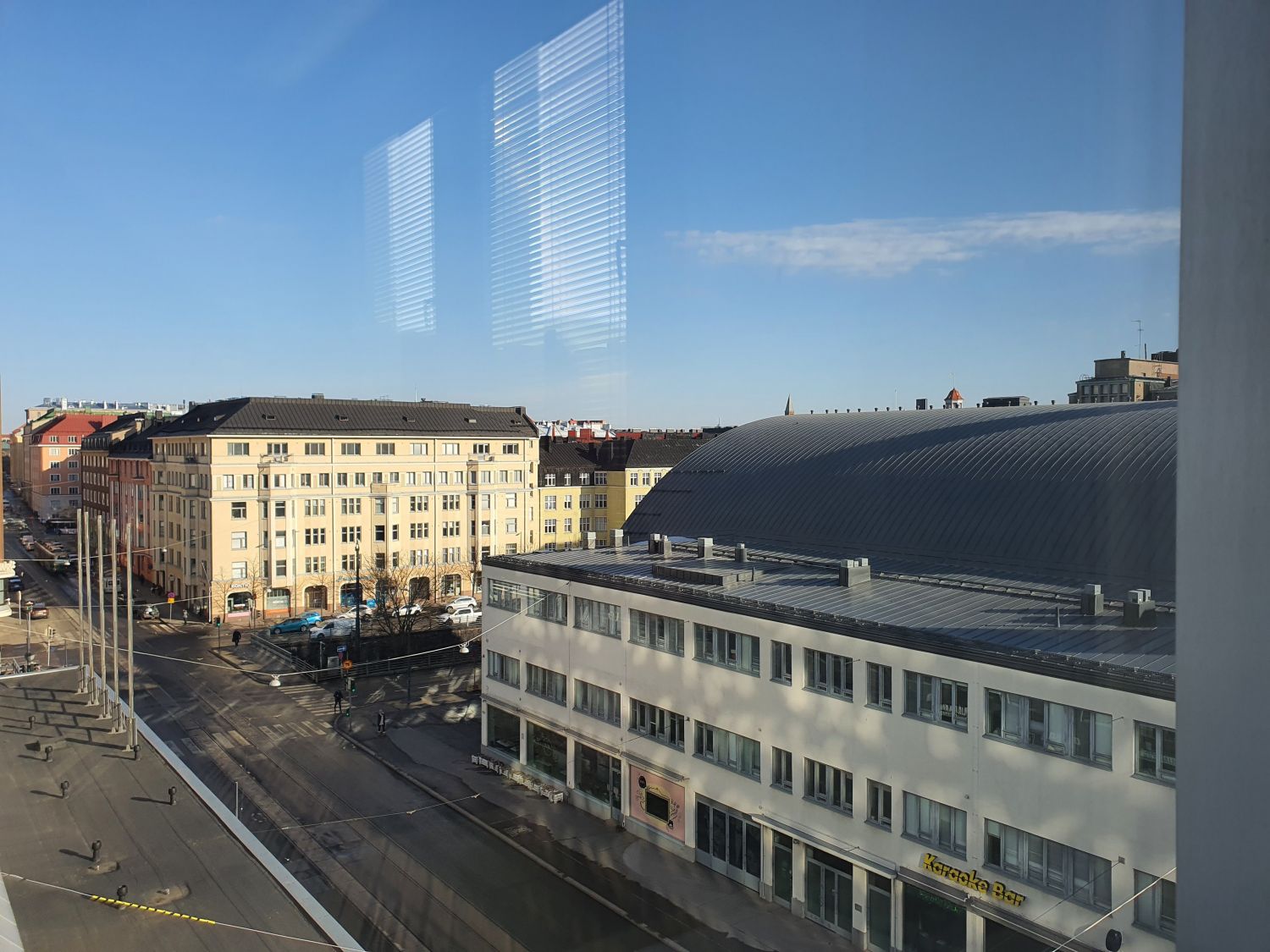 Valoisa tila, josta hienot näkymät kolmeen suuntaan.