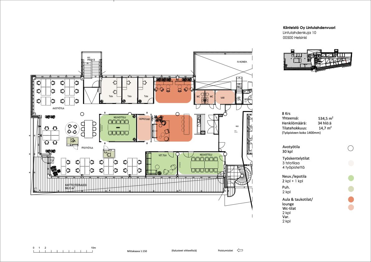 Valoisa ja edustava, täysin remontoitu 8. kerroksen 534,5 m² toimistotila modernissa kiinteistössä Helsingin Sörnäisissä.