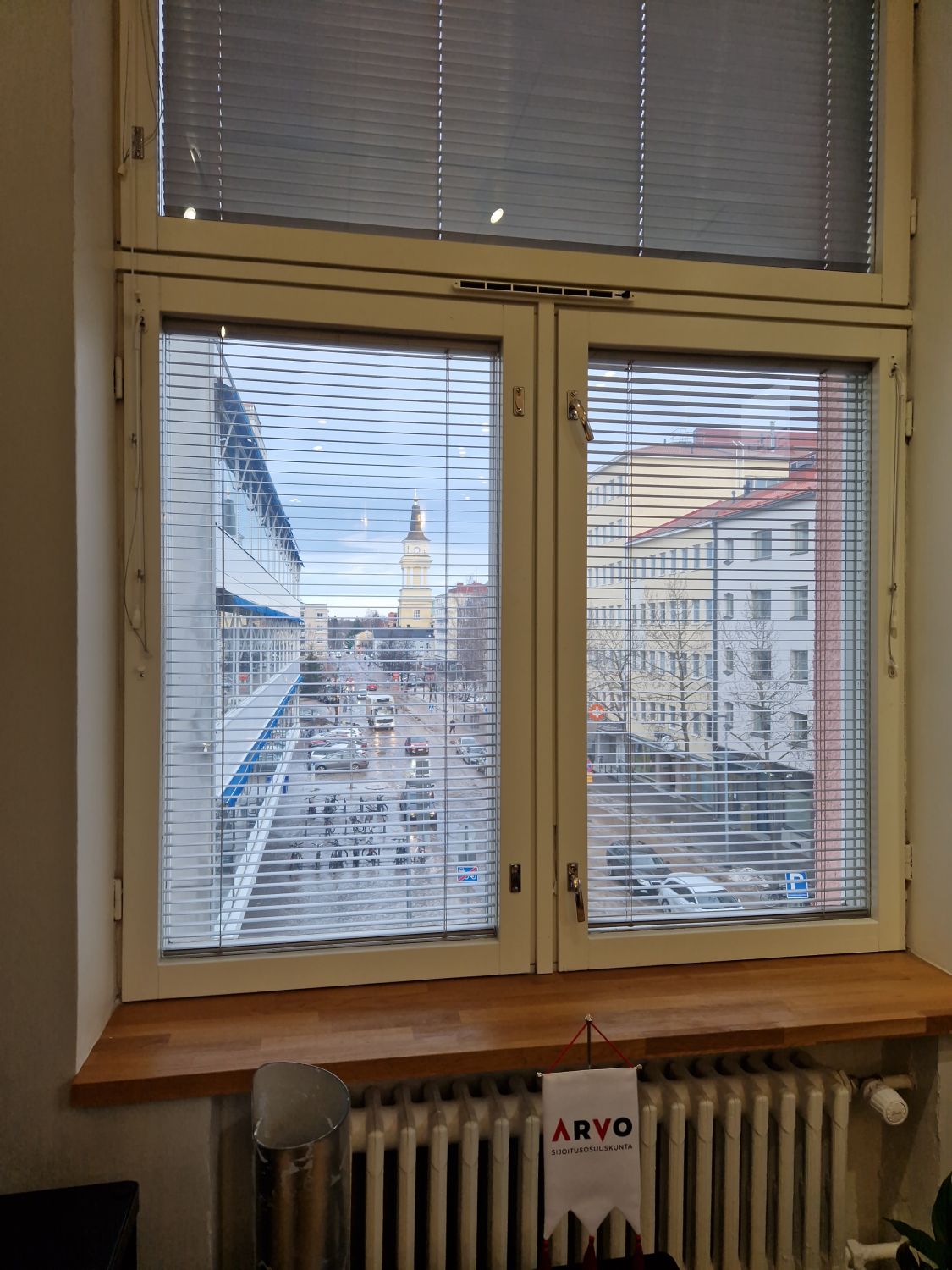 Huoneiston ikkunat ovat Rotuaarin suuntaan. Keittiötilan ikkuna sisäpihalle.