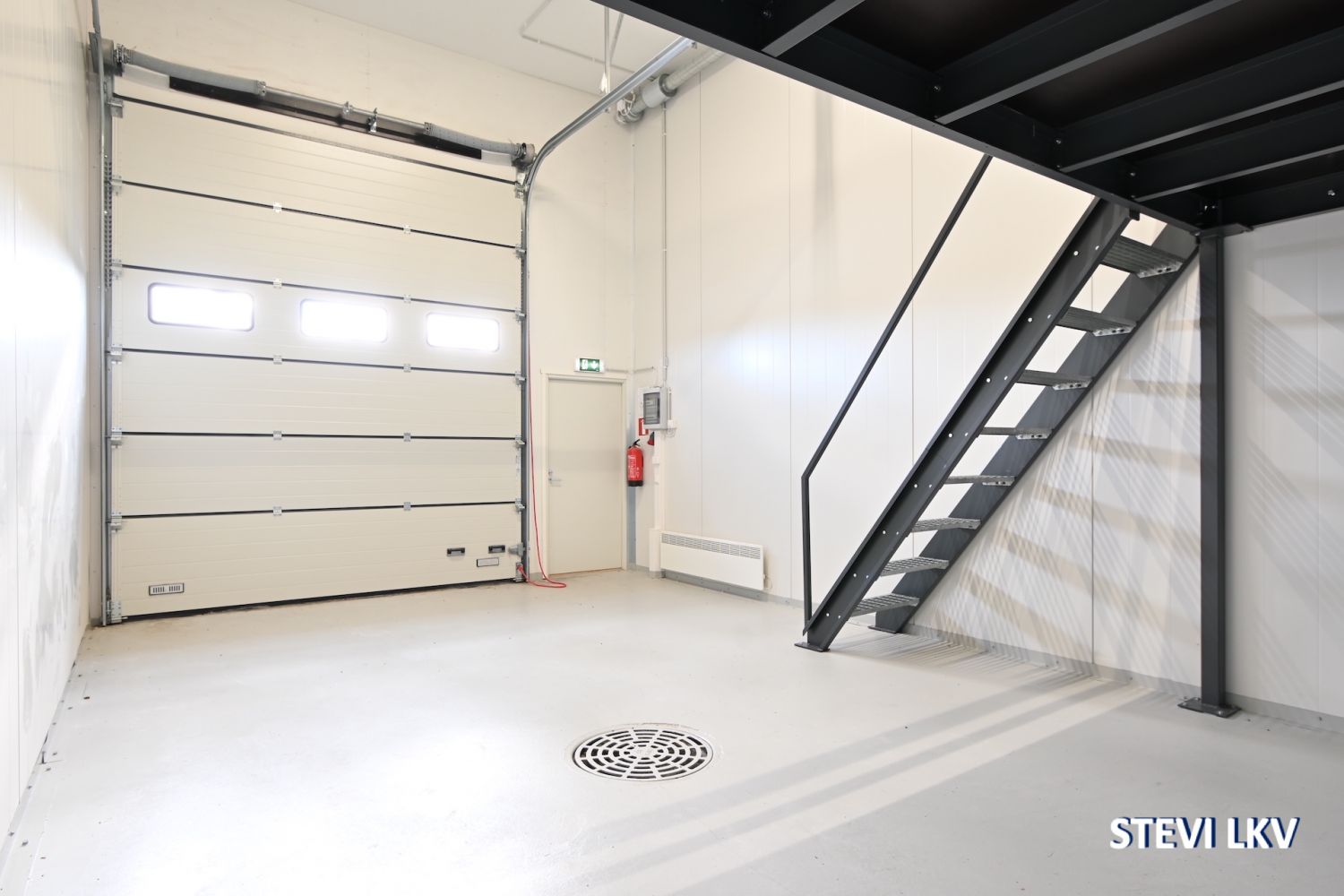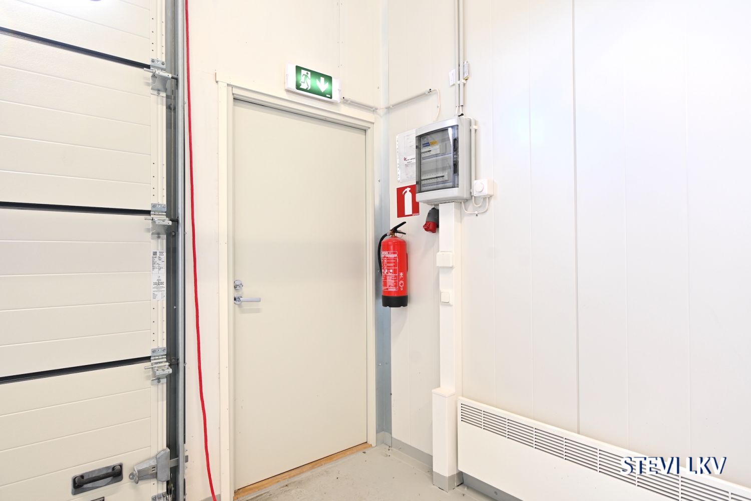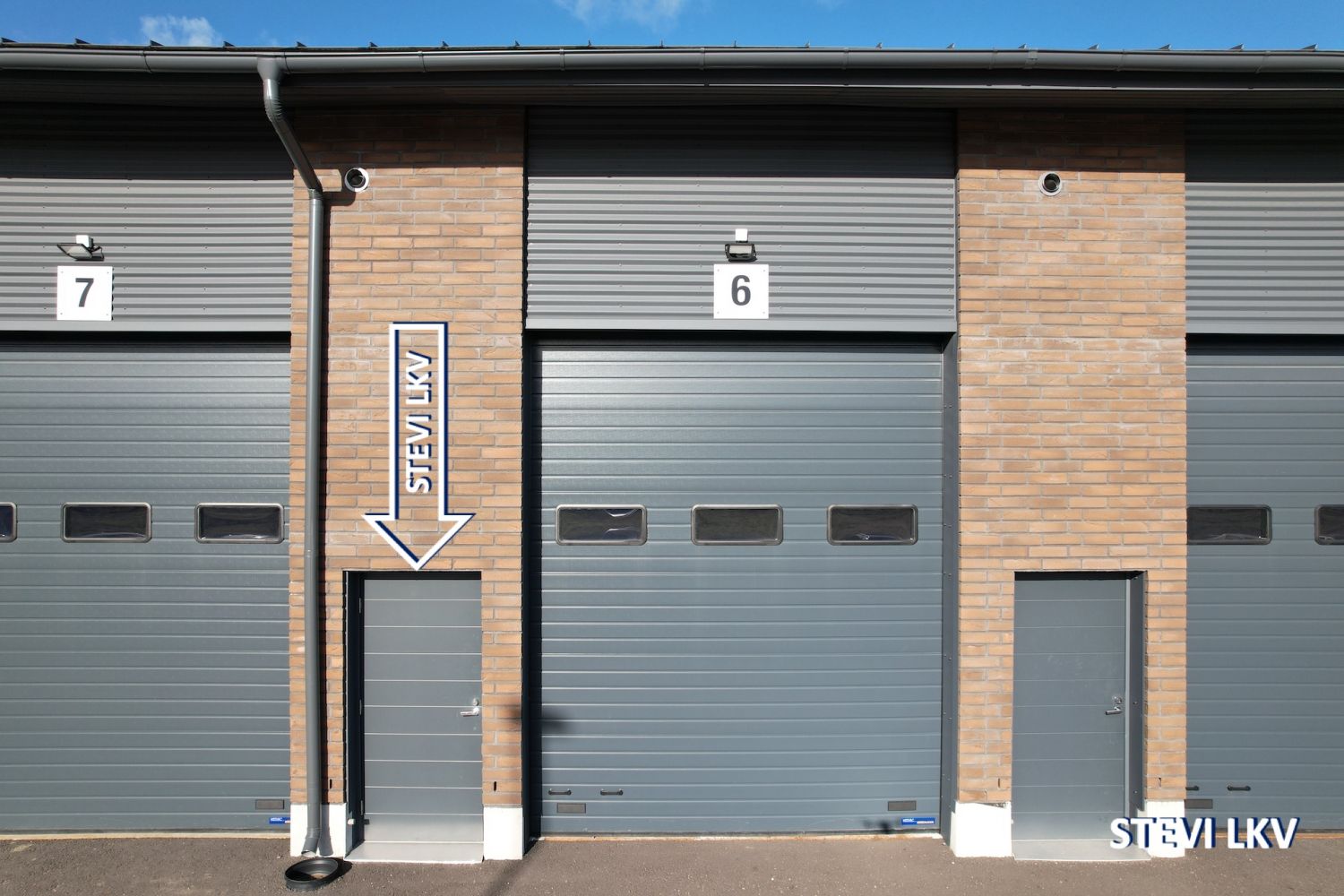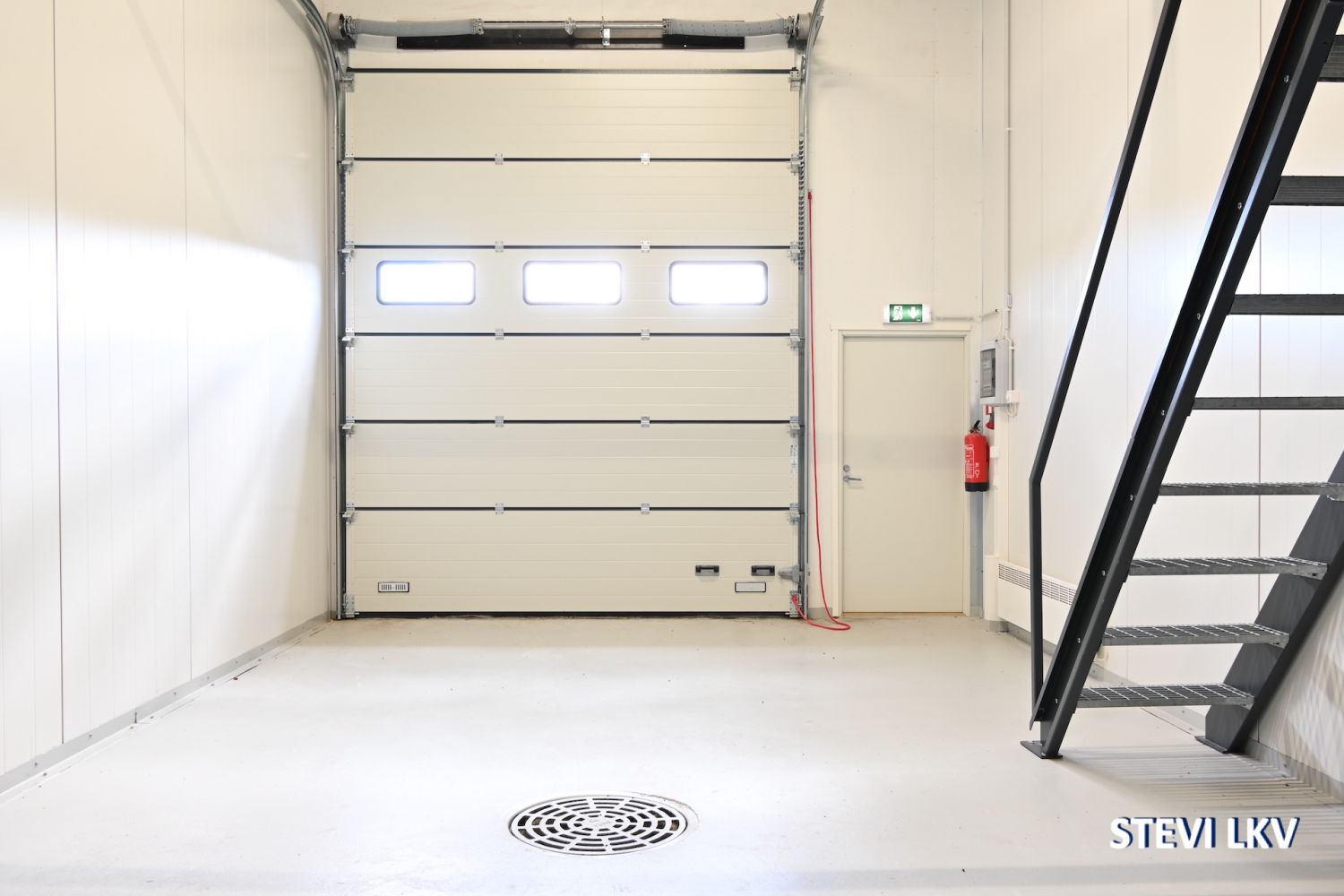 Halliin kuljetaan joko 3,9 metriä korkeasta nosto-ovesta tai erillisestä käyntiovesta.