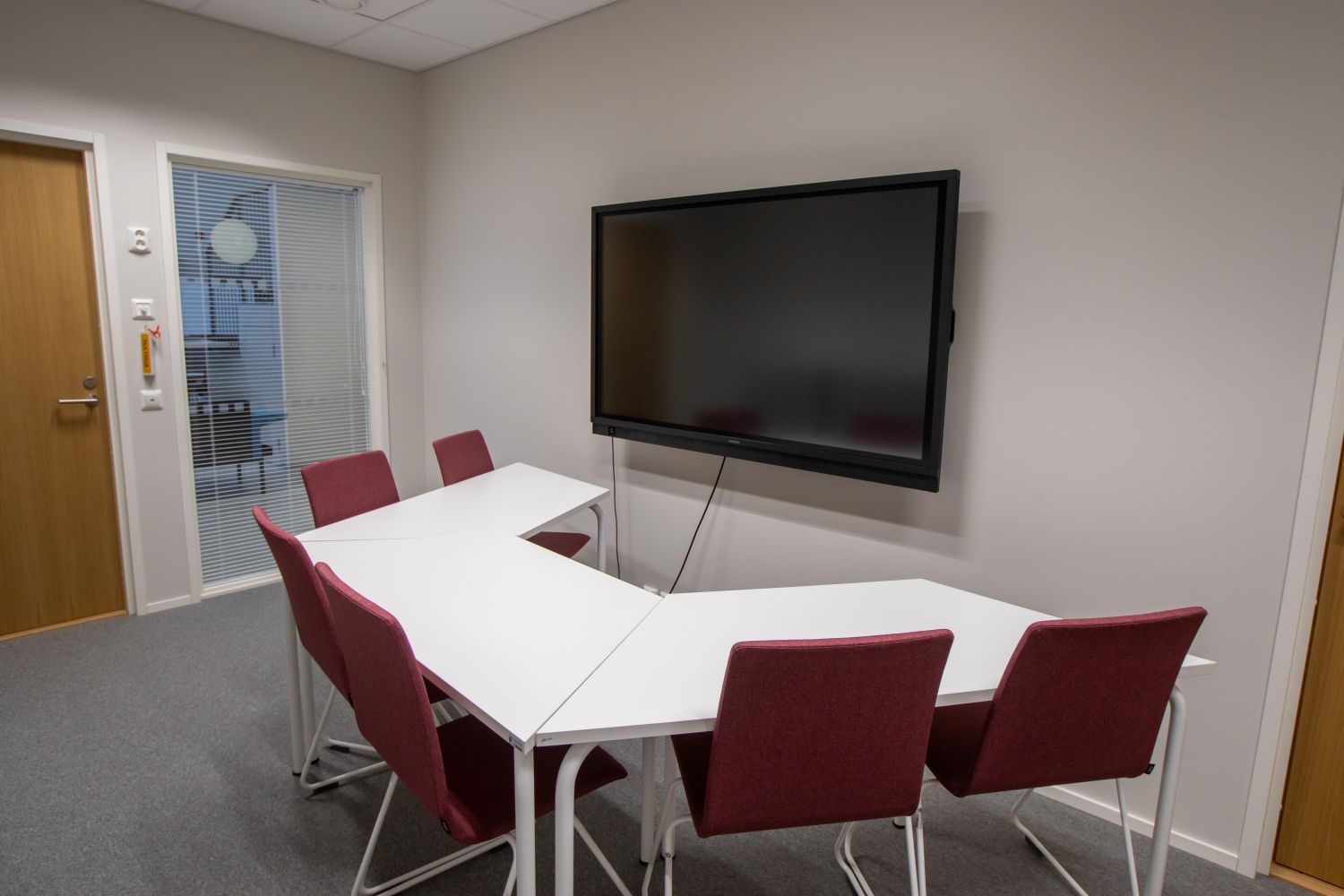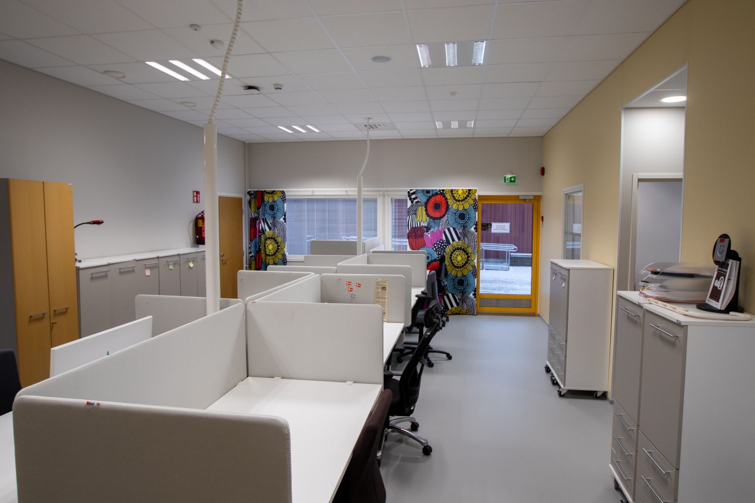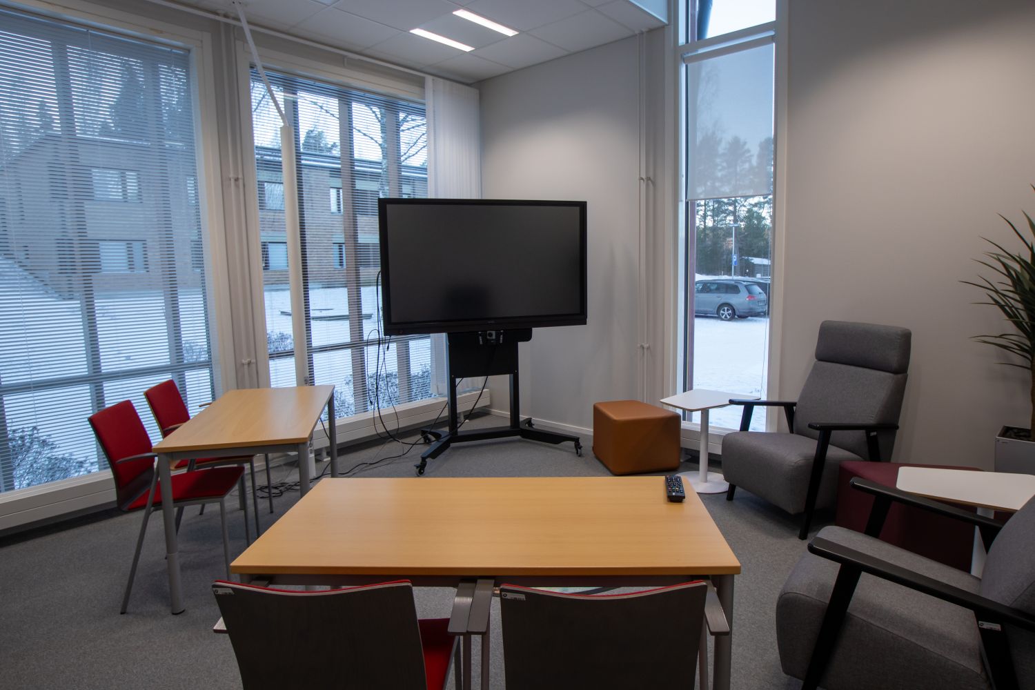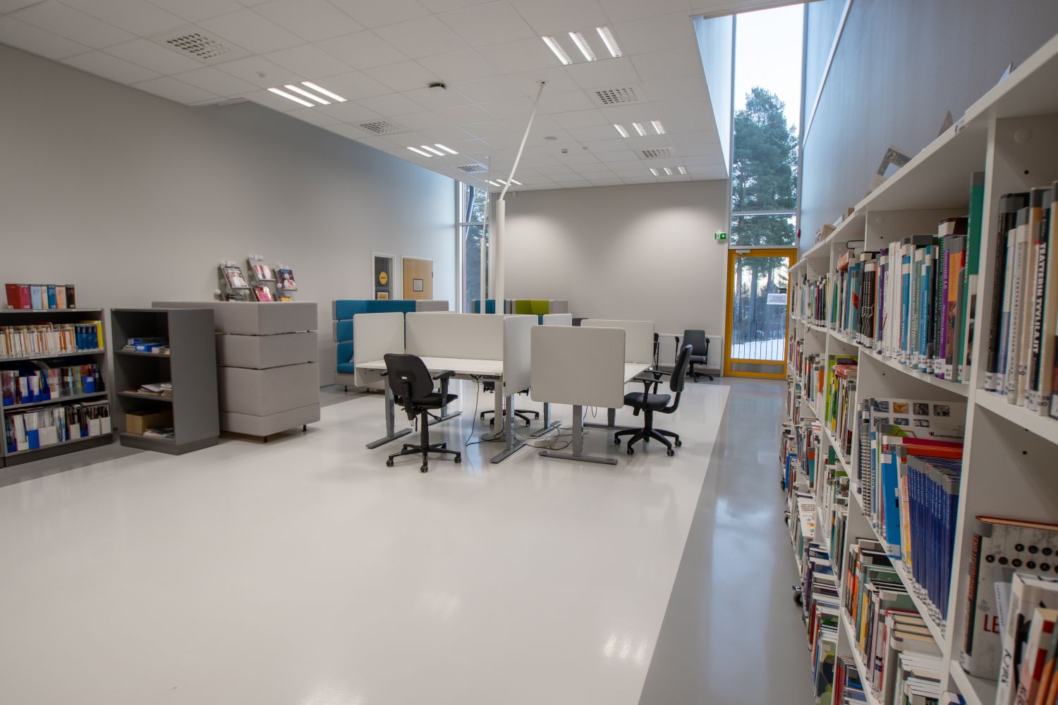 Tiloissa käyttötarkoituksen mukainen tehokas ilmanvaihto hiilidioksiditunnistimilla varustettuna, LED-valaistus läsnäolotunnistimin ja äänieristetyt luokka- ja kokoustilat.