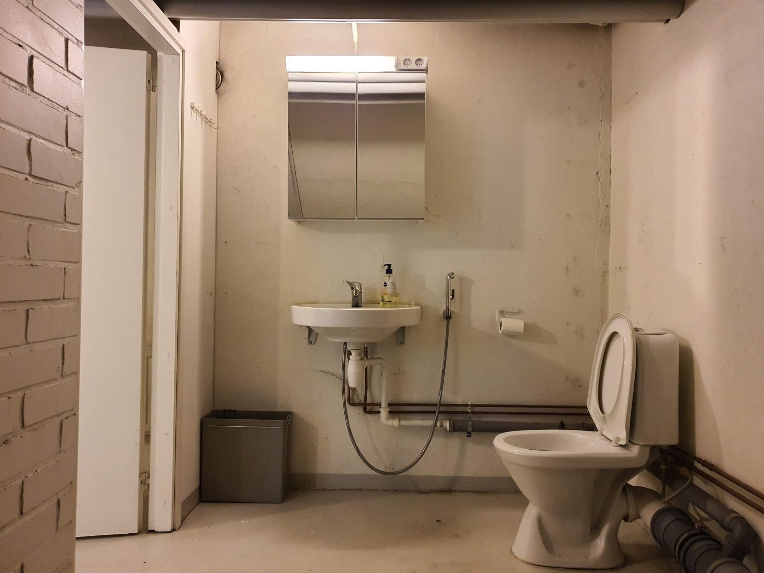 Erittäin siisti ja hyväkuntoinen tila rakennuksen kellarikerroksesta. Selkeä avonainen pohja (14,5 m x 16,5 m) jossa lisäksi erillinen n. 9m2 käsivarasto, pieni keittiö ja tilava wc. Tilan korkeus 3 m (vapaak. 2,4 m).