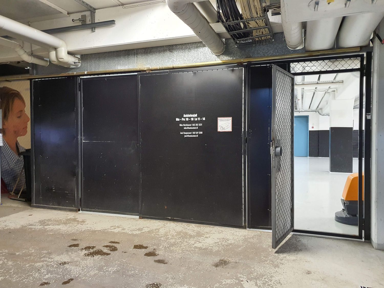 Kulku tilaan lämmitettyä ajoluiskaa pitkin. Nosto-ovi (korkeus 2,5 m), jossa myös käyntiovi. Lämmin kuiva sisälastausalue, josta isot taiteovet tilaan käyntioven lisäksi.