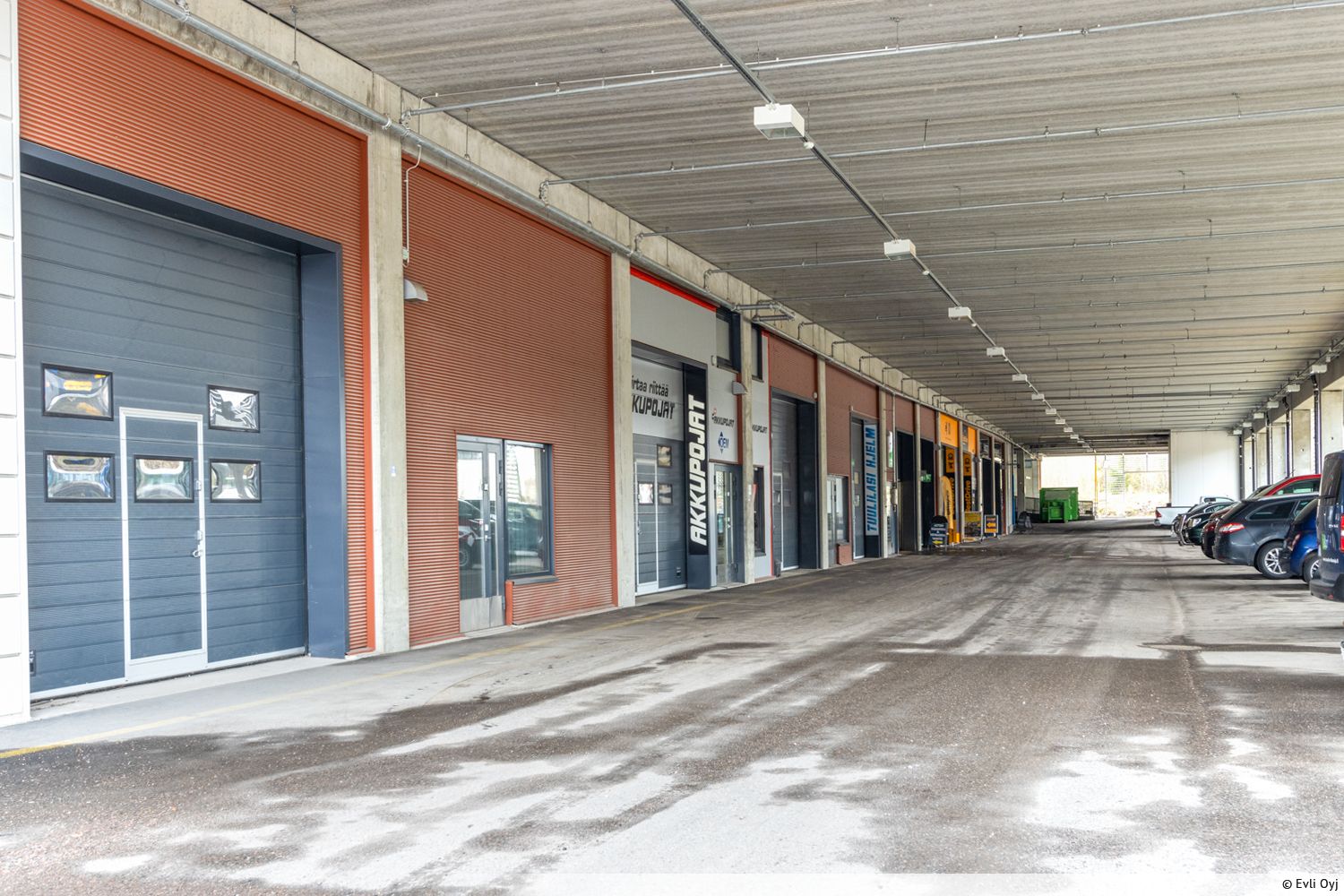 Pysäköintipaikkoja löytyy toimitilojen edestä. 1-kerroksen pysäköintipaikat ovat katetulla alueella ja 2-kerroksen paikat kannella, johon kulku ajoluiskan kautta.