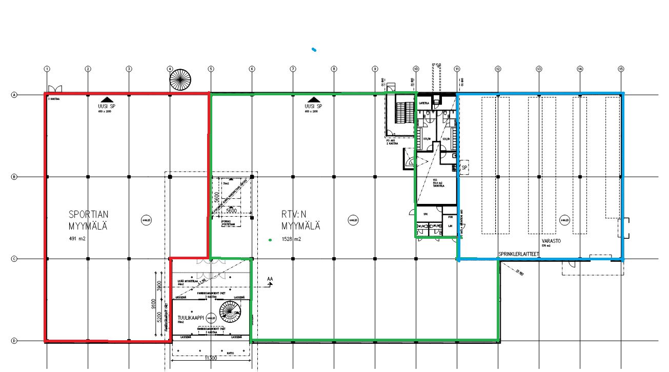 Vuokrattavissa Sportian tila n. 500m2, RTV liiketila n. 1500m2 ja varasto n. 600m2.