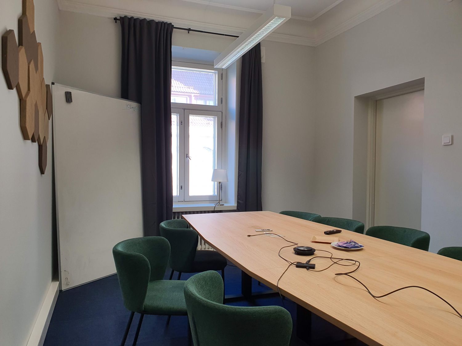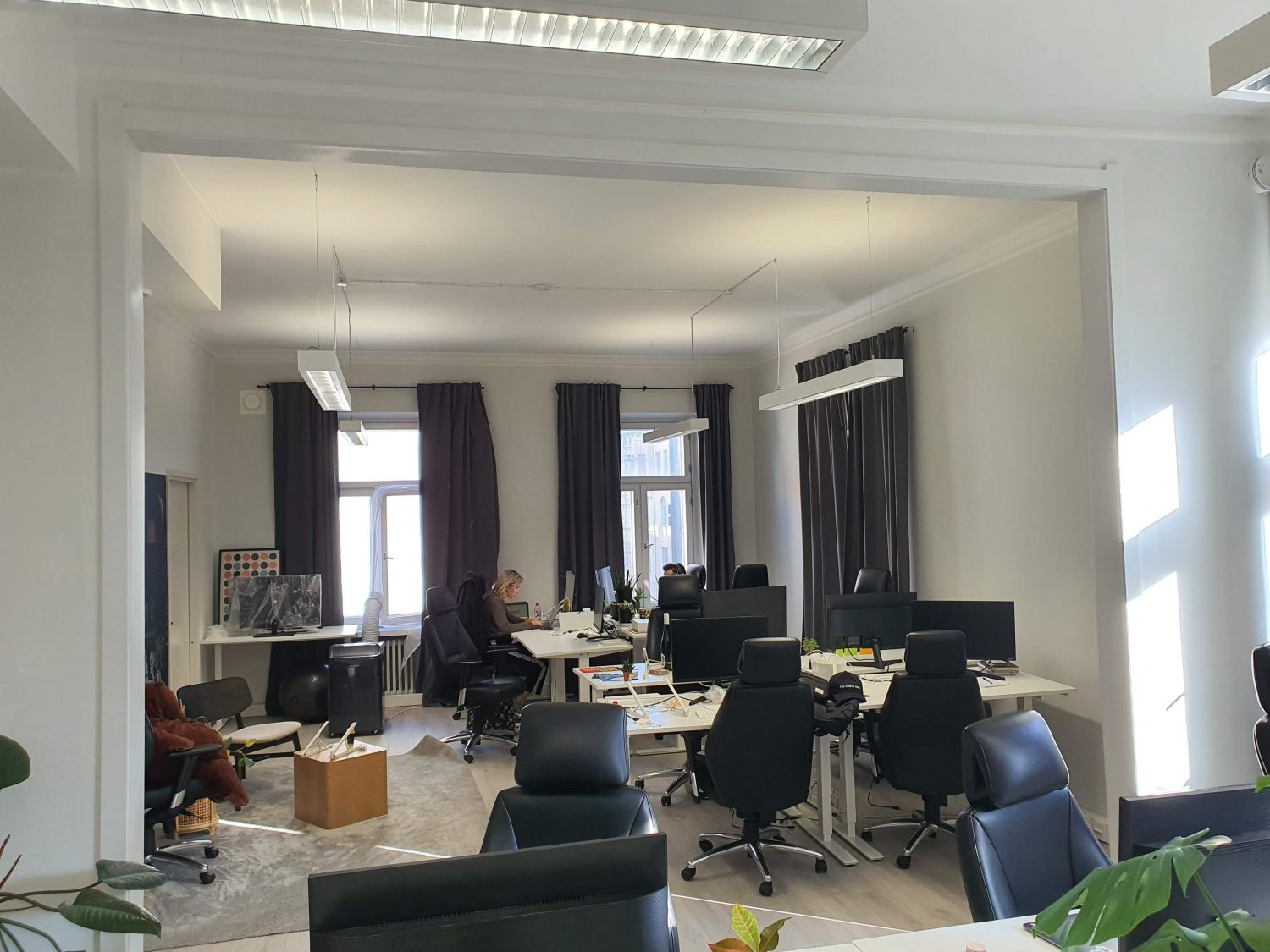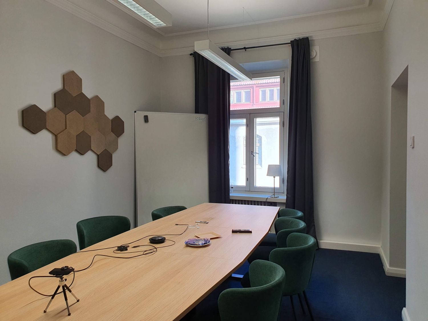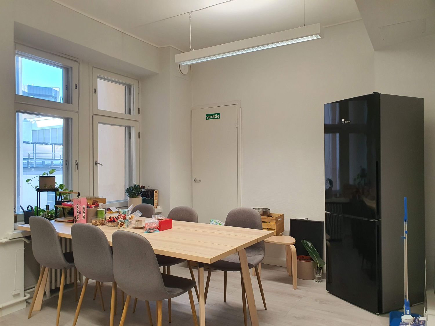 Tilakokonaisuudessa 3 reilun kokoista teams-/neuvotteluhuonetta, iso avotila, taukokeittiö ja 2 x wc-tila.