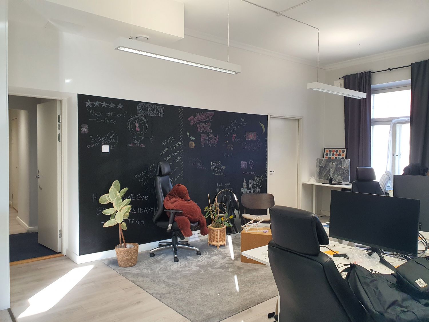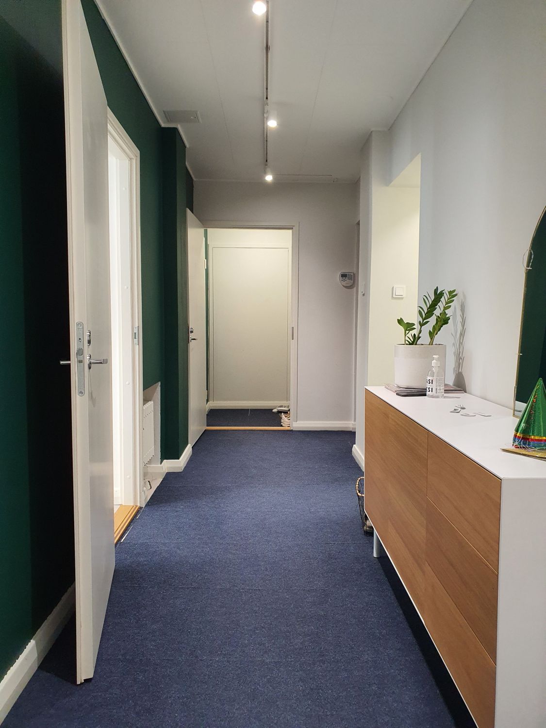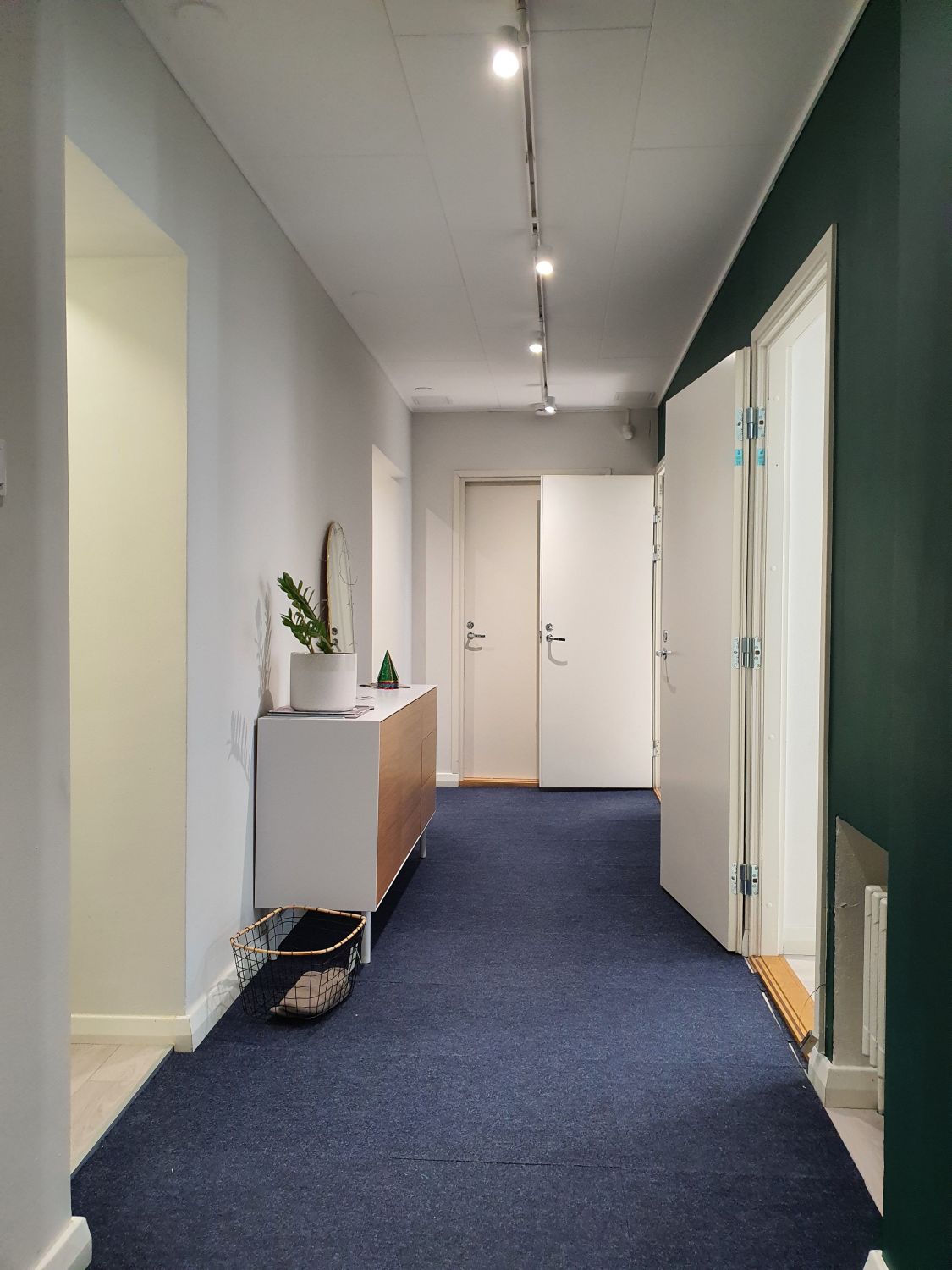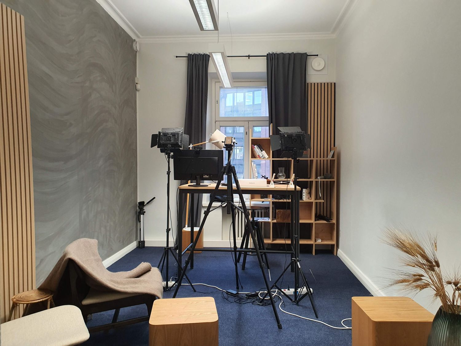 Tilakokonaisuudessa 3 reilun kokoista teams-/neuvotteluhuonetta, iso avotila, taukokeittiö ja 2 x wc-tila.