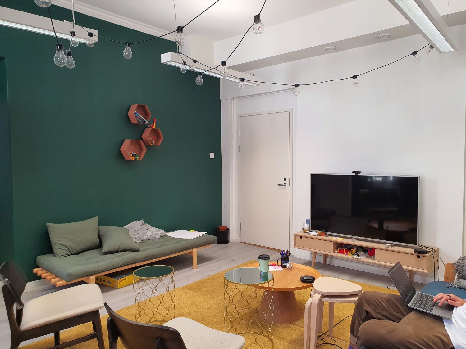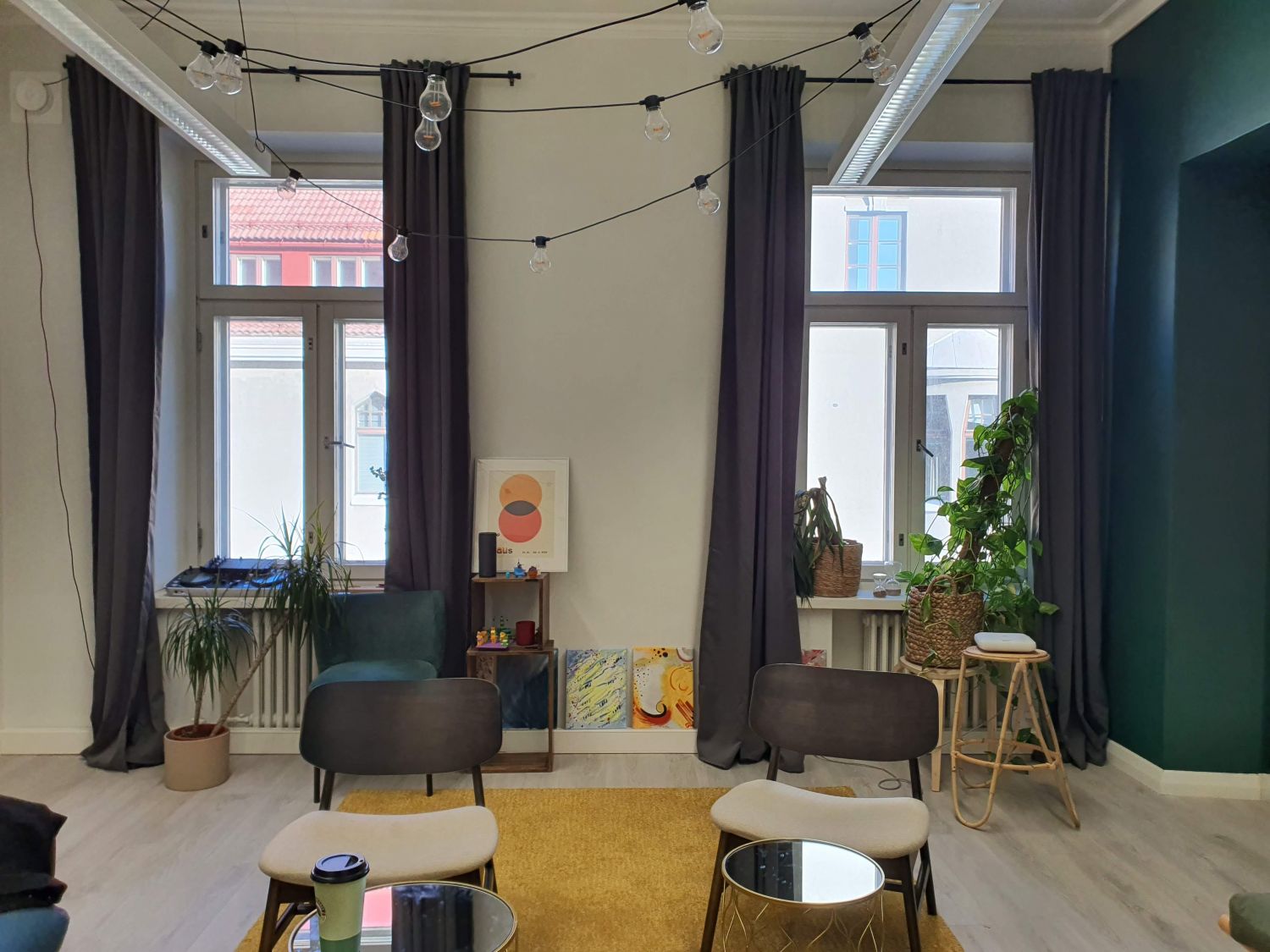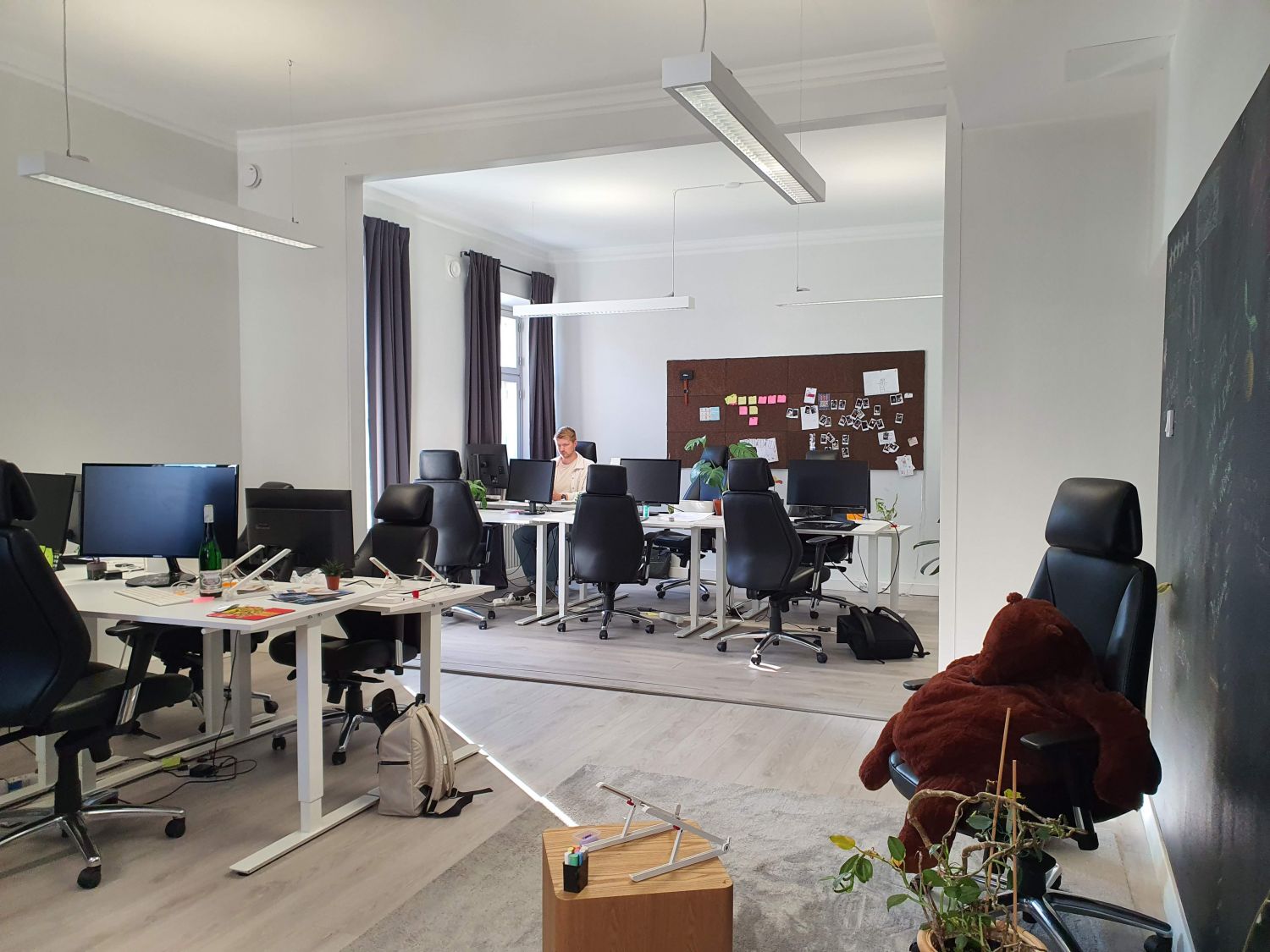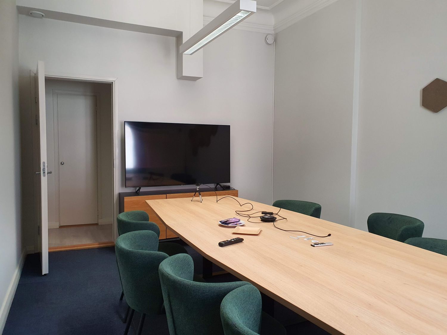 Tilakokonaisuudessa 3 reilun kokoista teams-/neuvotteluhuonetta, iso avotila, taukokeittiö ja 2 x wc-tila.