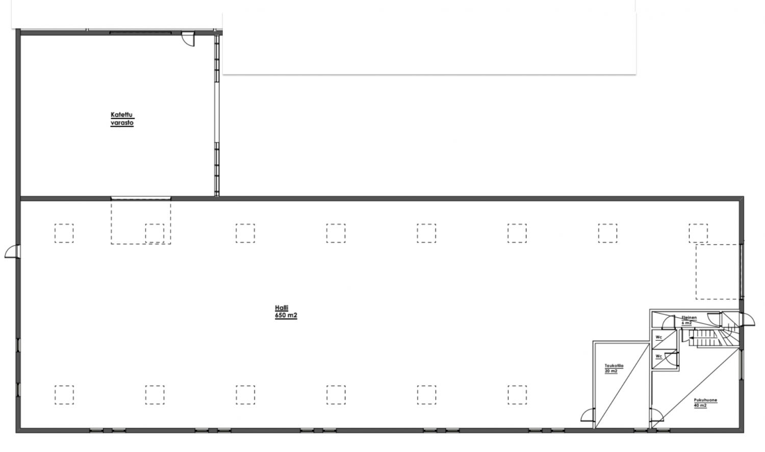 Hallin pinta-ala 892m2 ja korkeus 5,5m