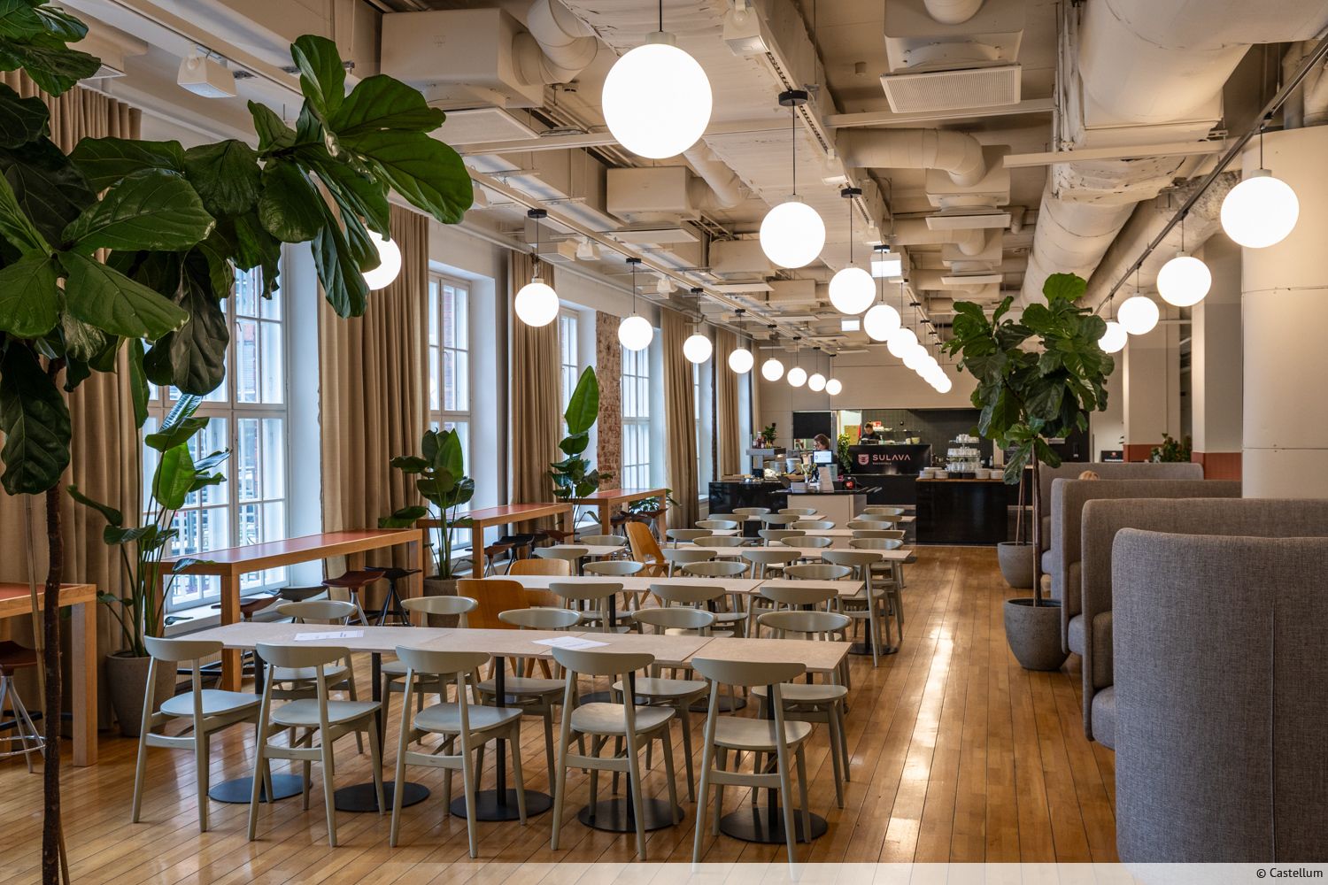 Lindström Talon aula-, ravintola- ja neuvottelutilat on uudistettu vastuullisesti hiilijalanjälkeä seuraten, toiminnallisuutta korostaen, materiaaleja kierrättäen sekä uutta luoden. Talon pitkä historia näkyy tyylikkäinä yksityiskohtina kuten suurina ruutuikkunoina, punatiiliseininä, korkeina tiloina, rouhean tyylikkäänä harmonisessa värimaailmassa.