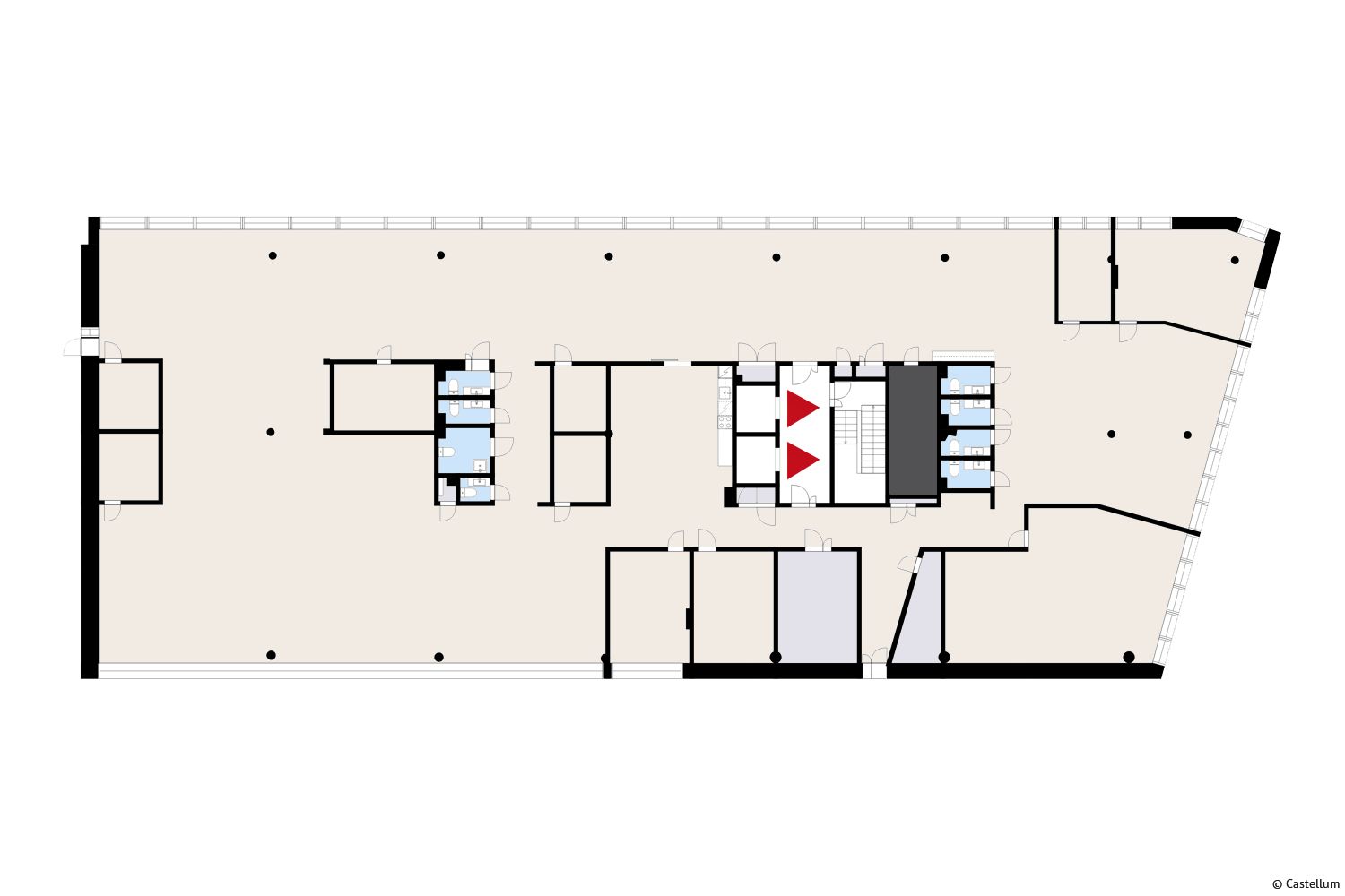 Valoisa ja selkeäpohjainen monitilatoimisto, jota voidaan laajentaa 208m2 samassa tasossa. Muuntojoustava tila. Ikkunarivistö kiertää tilaa antaen luonnonvalon työpisteille ja working cafehen.
