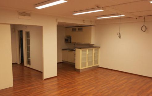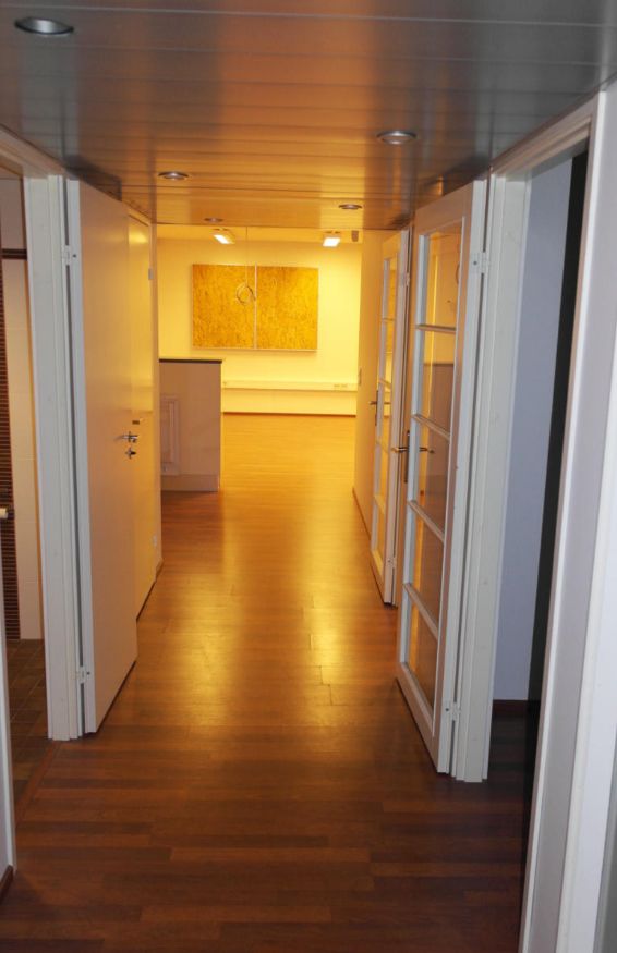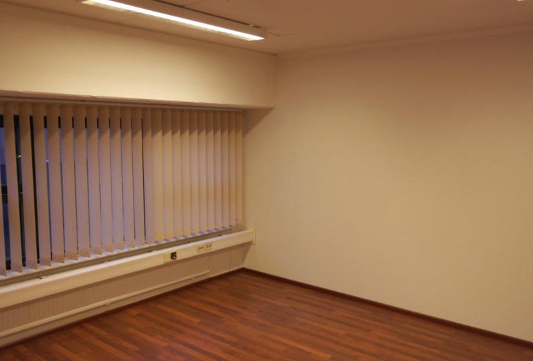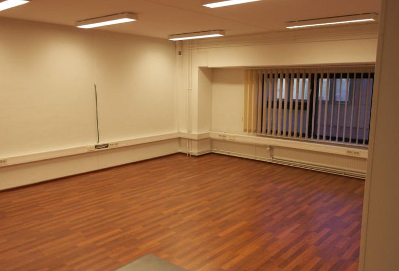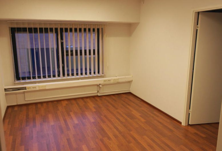 Kolme toimistohuonetta, aula/baarikeittiö, laitehuone, kaksi WC-tilaa, siivouskomero.