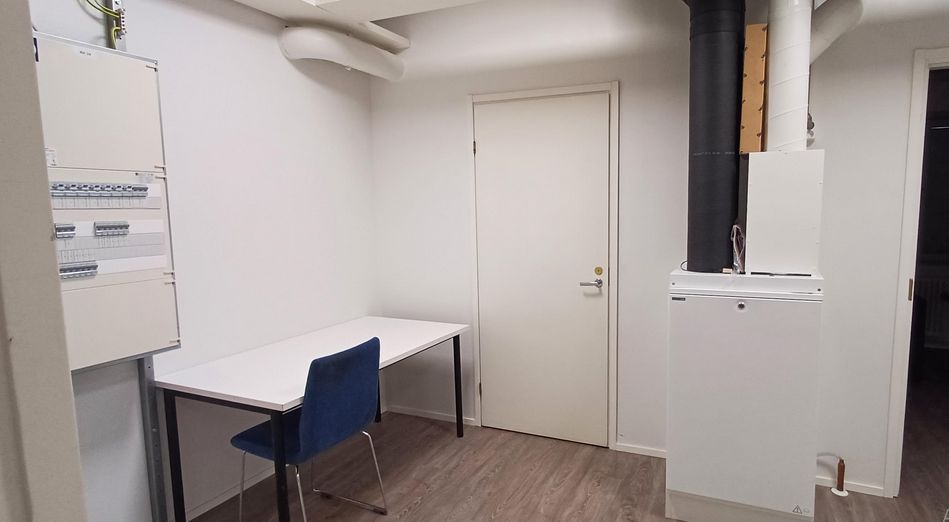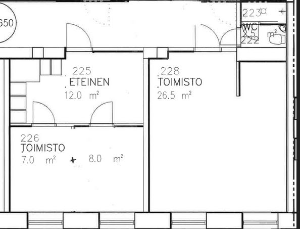 Vuokrattavana toimtila (53,5 m2), joka kahdesta huoneesta, joista yksi on jaetuu kahdeksi. Yhteiskäyttöiset wc-tilat. Tila sijaitsee 2.kerroksessa ja siihen ei ole hissiyhteyttä. Sisäänkäynti on lastauslaiturilta. Toimitila sijaitsee rakennuksessa, jossa aikaisemmin oli linja-autoasema. Hetkellä samassa kiinteistössä toimii K-kauppa ja lounasravintola. Pihalta löytyy parkkipaikkoja.