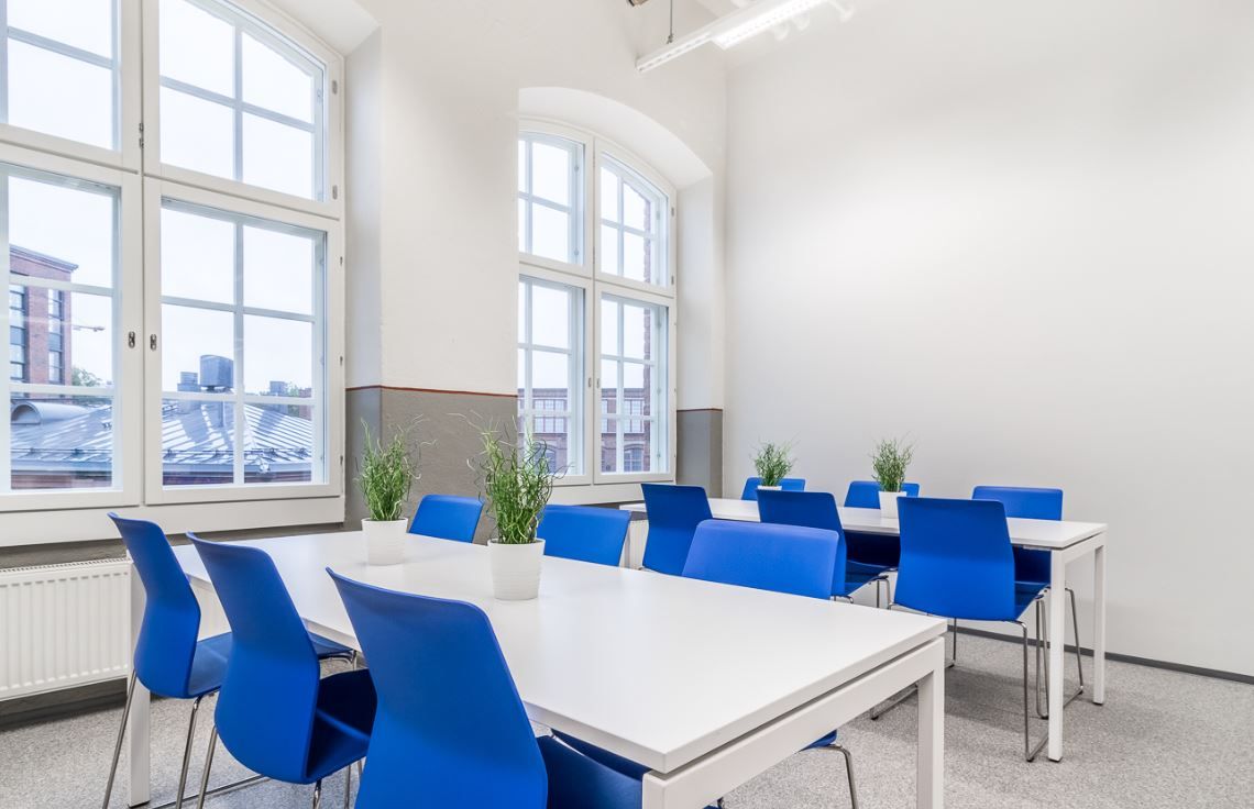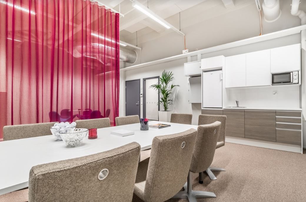 Avotoimistotila, jossa oma minikeittiösyvennys. Vuokralaisten yhteiskäytössä on varaustilanne huomioiden ilman erillisveloitusta 3. ja 4. kerroksessa sijaitsevat neuvottelutilat sekä taukokeittiö ja wc-tilat.