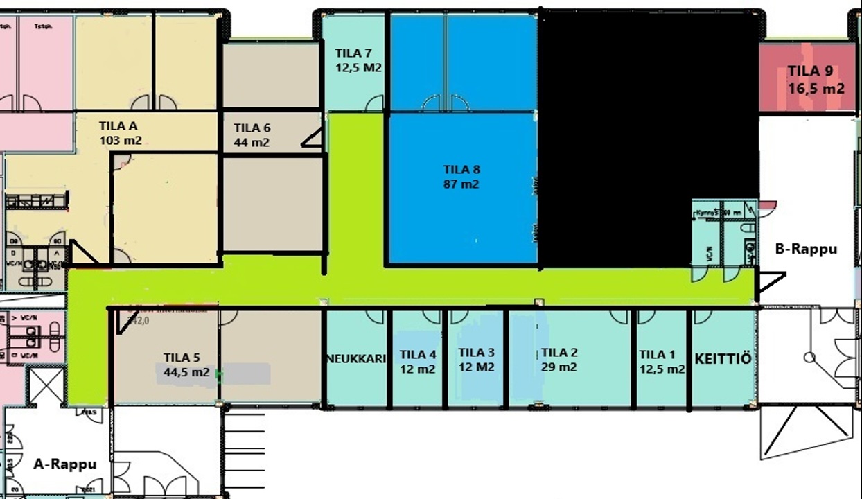 Tilat sijaitsevat kiinteistön B-rapun 2. kerroksessa ja kerrokseen ei ole hissiä.