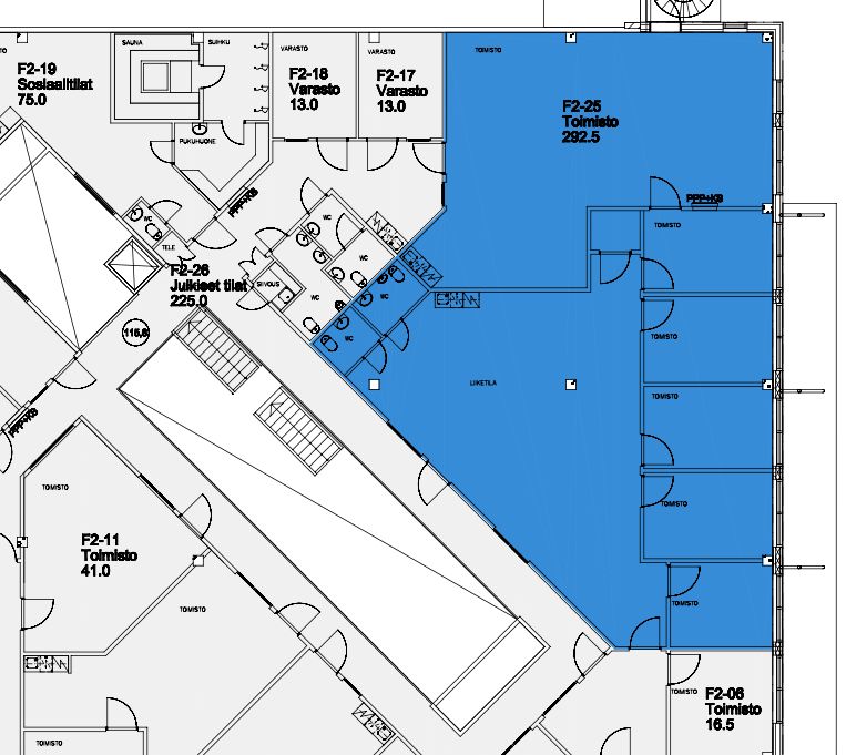 Tämä 292,5m² toimistotila sijaitsee kiinteistön 2. kerroksessa. Siisti ja valoisa toimisto koostuu avotilasta ja useammasta työhuoneesta. Oma keittiöpiste ja wc:t. Vapautuminen sopimuksen mukaan.