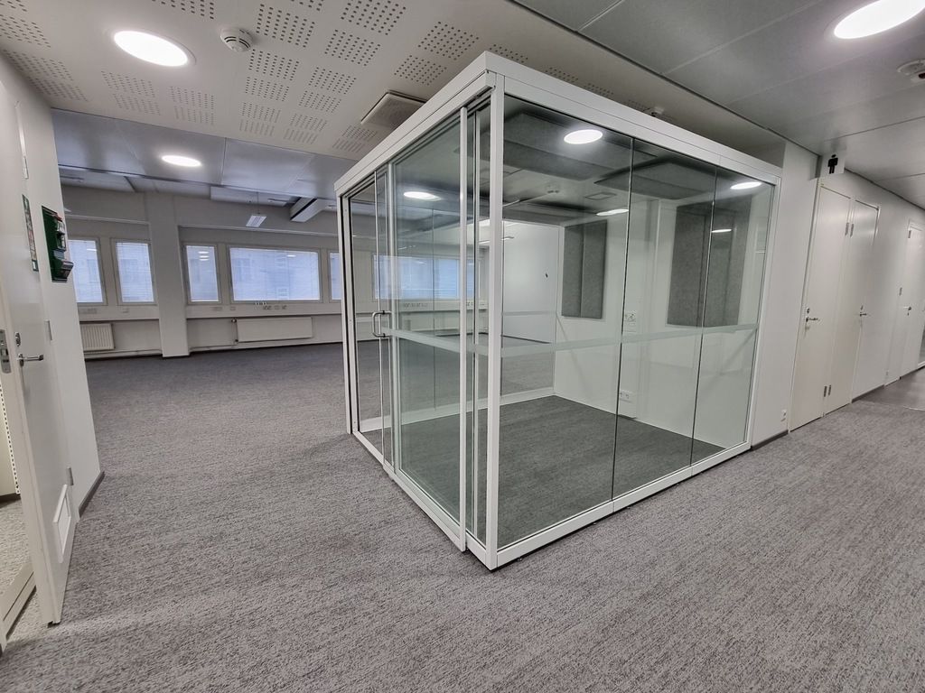 Kyseinen 636 m² toimistotila sijaitsee kiinteistön 4. kerroksessa. Toimistossa on huoneita, avotilaa sekä omat keittiö- ja wc-tilat. Vapautuminen 1.7.2025. Kuvat ovat yleiskuvia kiinteistön tiloista.