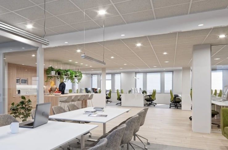 Tämä tila sijaitsee kolmannessa kerroksessa, ja sen kokonaispinta-ala on 690,5 m². Tilan voi tarvittaessa yhdistää 362 m² lisätilaan, jolloin kokonaispinta-ala kasvaa jopa 1052 m²:iin. TIlasta löytyy sekä avotyötilaa että työ- ja neuvotteluhuoneita.