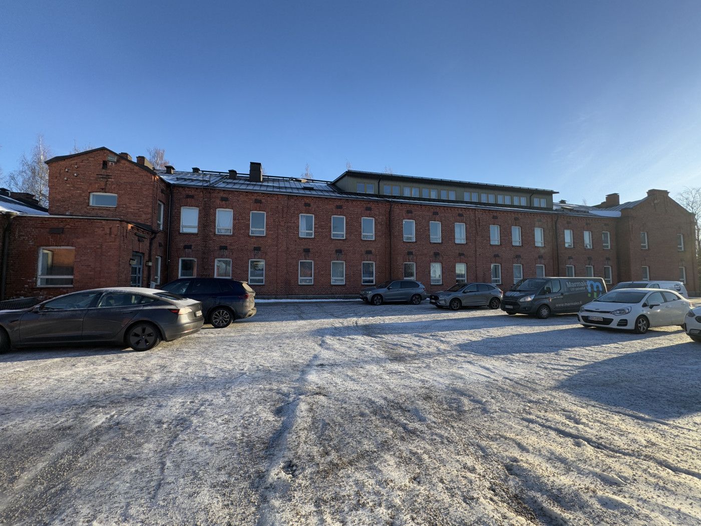 Hennalan perinteikkäällä kasarmialueella 7290 m2 rakennuskokonaisuus kolmessa kerroksessa.