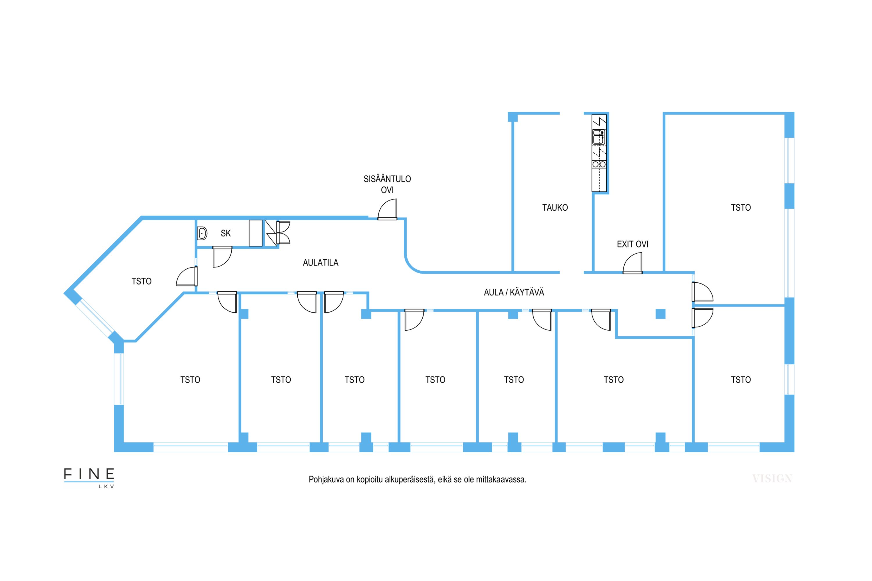 Tila on heti vapaa ja se on mahdollista jakaa pienempiin osiin – voit vuokrata yksittäisiä huoneita tarpeesi mukaan. Yhteiskäyttötilat jyvitetään vuokrassa.