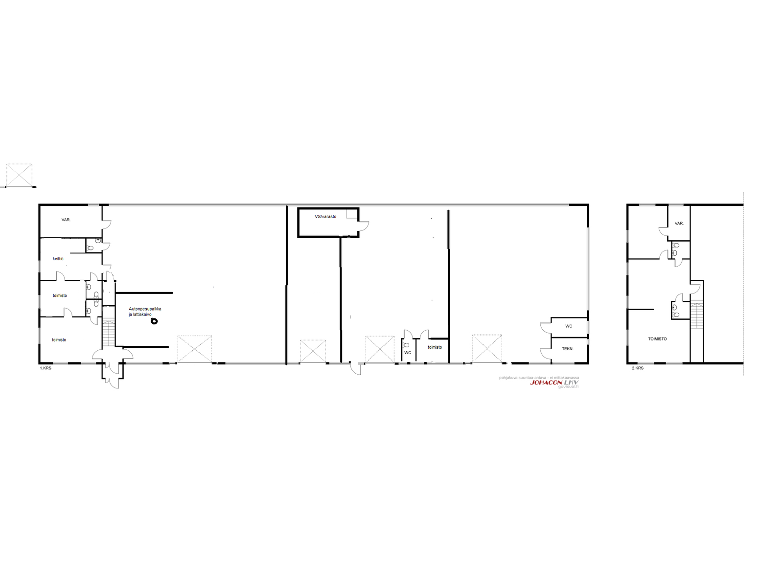 5) Toimistotila 2. kerros) Kaksi toimistohuonetta, 2 wc sekä neuvotteluhuone.