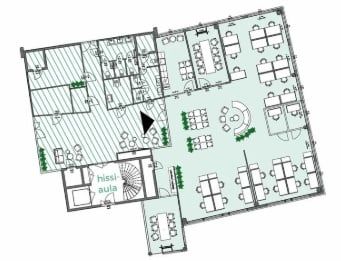 Vuokrattavana moderni toimistotila viidennessä kerroksessa. Tässä valoisassa tilassa on suuret ikkunat kolmeen suuntaan ja erittäin toimiva pohjaratkaisu. Tilakoosta riippuen tilassa on joko yhteiskäyttöiset tai omat wc-tilat kerroksen muiden käyttäjien kanssa.