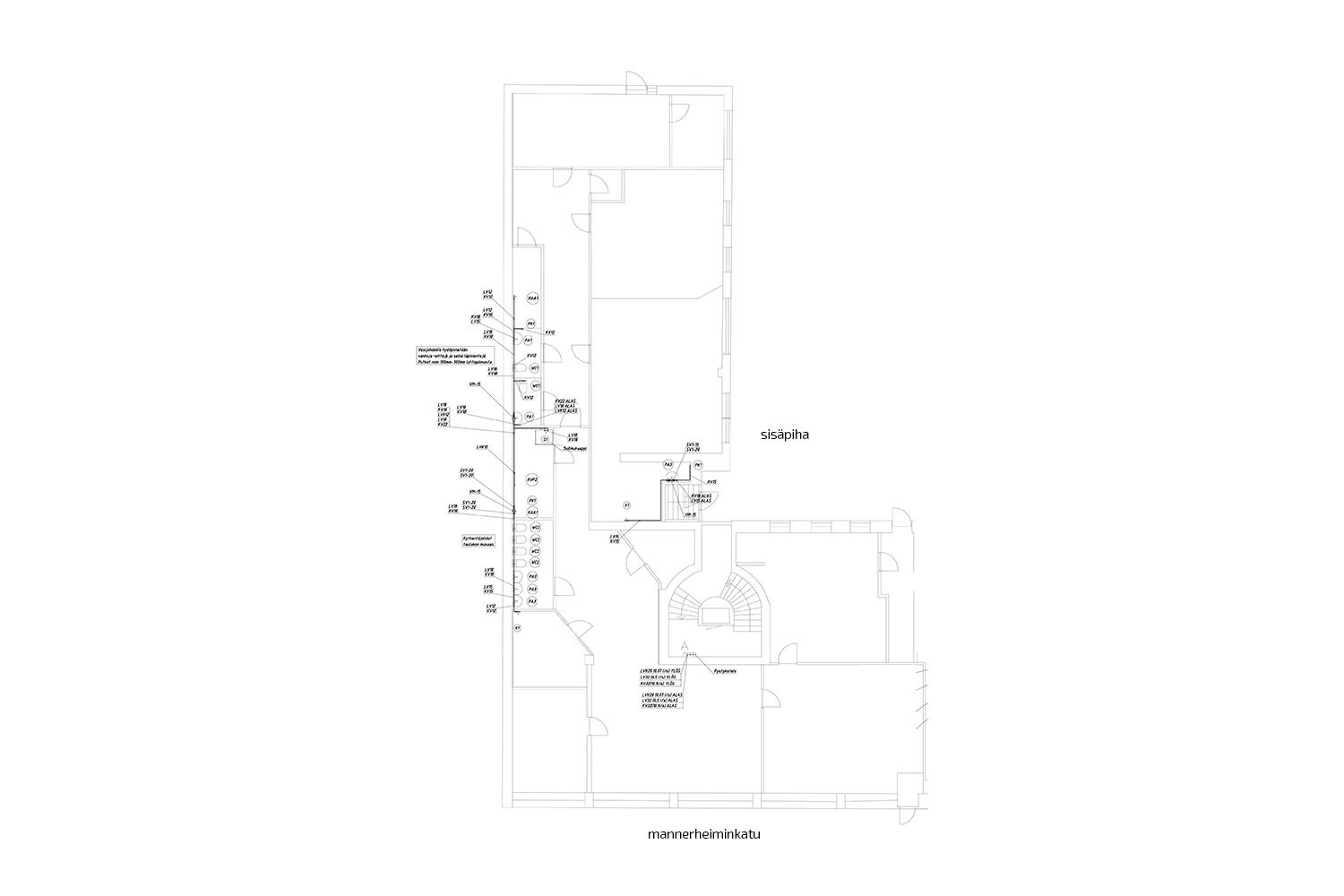 Tilaan oma sisäänkäynti Mannerheiminkadulta sekä taloyhtiön takapihalta. Tilaa remontoidaan ja pintoja uusitaan. Huoneisto on mahdollista jakaa kahdelle käyttäjälle ja se on tällä hetkellä pääosin avointa tilaa ja siellä on kaksi keittiötä sekä useampi wc. Mannerheiminkadulle päin on monta isoa näyteikkunaa.