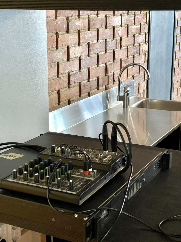 Tila koostuu salista sekä yhteiskäyttökeittiöstä, jossa toimijalle on rajattu pieni alue ruuanvalmistusta varten.