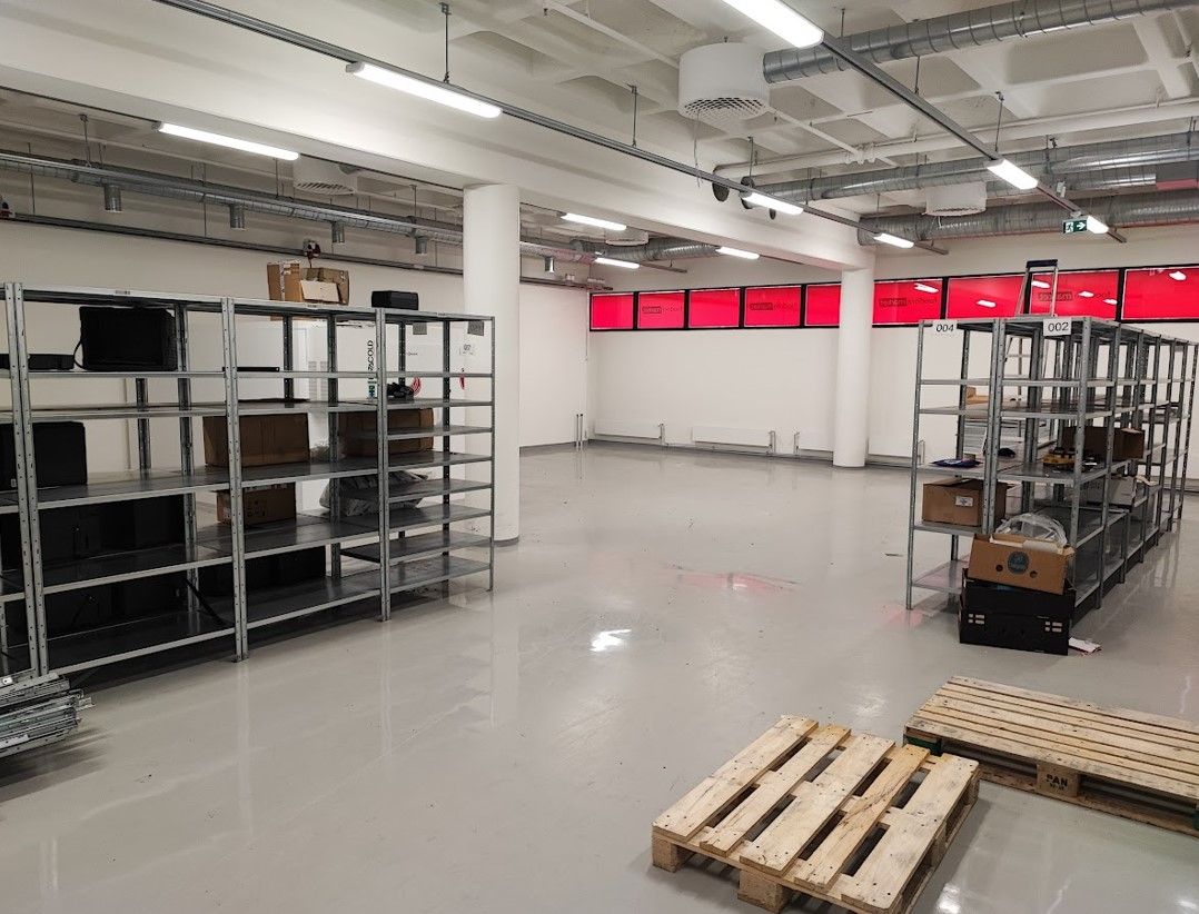 Lastauslaitureiden takana pieni toimisto/lähettämö. Toimiston/lähettämön takan oleva liiketila/varastotila on pääosin avotilaa. Tilassa on myös oma keittiö ja sosiaalitilat.