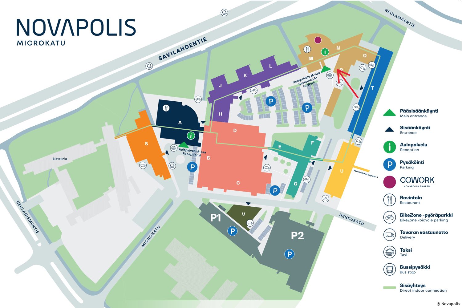 Sijainti on aivan kasvavan ja kehittyvän Savilahden keskiössä, jossa kolme koulutusastetta, tutkimus ja liike-elämä kohtaavat. Kuopion keskusta on alle 10 minuutin matkan päässä. Kiinteistölle on erinomaiset kulkuyhteydet julkisella liikenteellä sekä autolla.