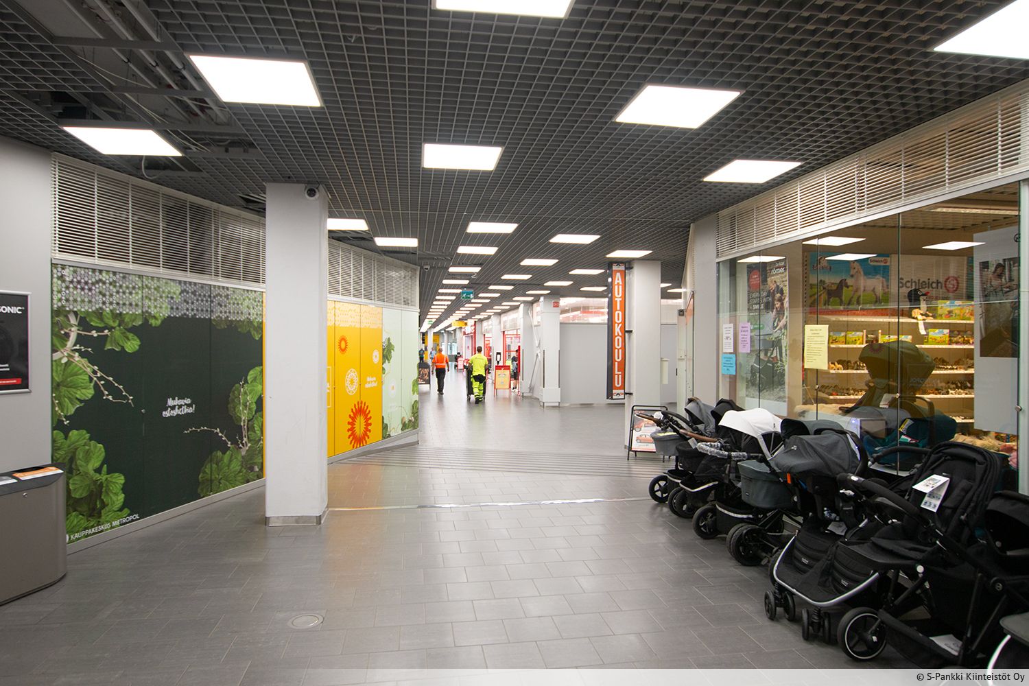 Siisti liiketila näkyvällä paikalla kauppakeskuksen toisessa kerroksessa. Tilassa on vaaleat seinät ja lattia laattapintaa. Kauppakeskus Metropol sijaitsee keskeisellä paikalla Joensuun keskustassa.