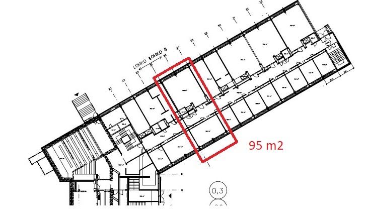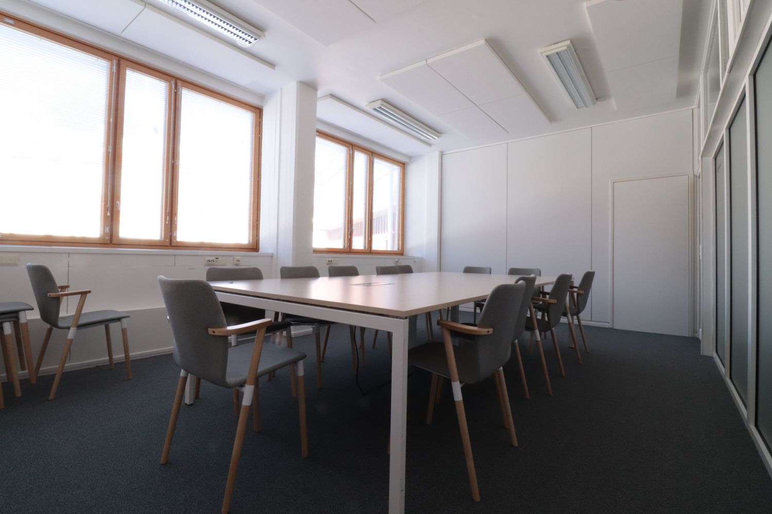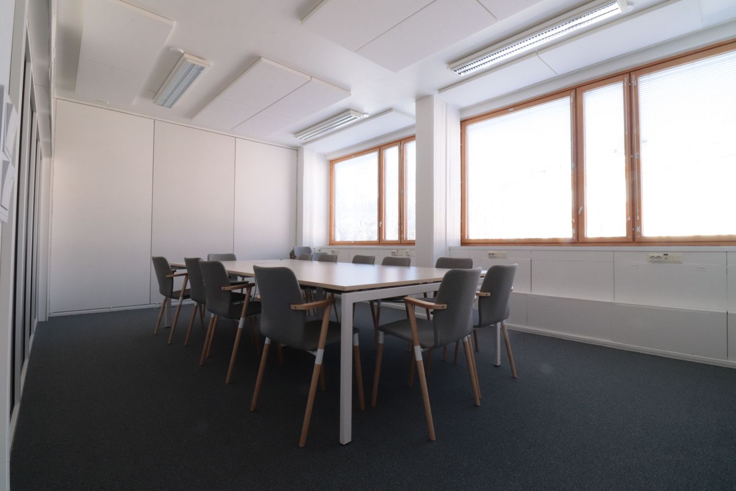 Toimistotilaa wc-, keittiö- ja neukkaritiloilla 240m2. Tila jaettavissa kahteen eri kokonaisuuteen ja vuokrattavissa erikseen, 145m2 ja 95m2. Vuokra 10,52 €/m2 + hoitovuokra 1 €/m2, hintoihin lisätään alv.