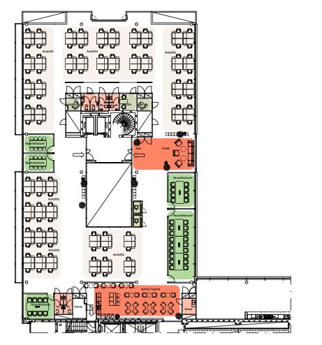 Tämä 898 m² tilakokonaisuus sijaitsee kiinteistön 5. kerroksessa. Toimisto on hyvässä kunnossa, mutta sitä on mahdollista remontoida vuokralaisen tarpeiden mukaan. Toimistossa on huoneita, avotilaa sekä omat keittiö- ja wc-tilat. Kuvat ovat esimerkkejä jo remontoiduista tiloista.