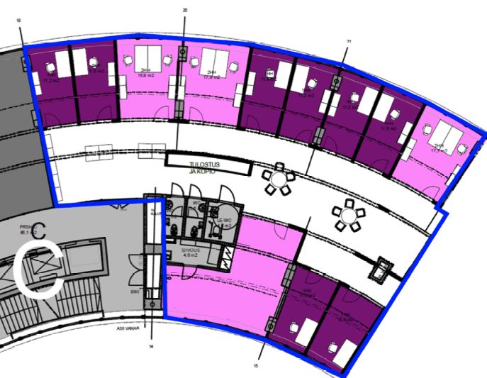 Vuokrattavana toimistotilaa näkyvällä paikalla Hakaniemen Ympyrätalossa.