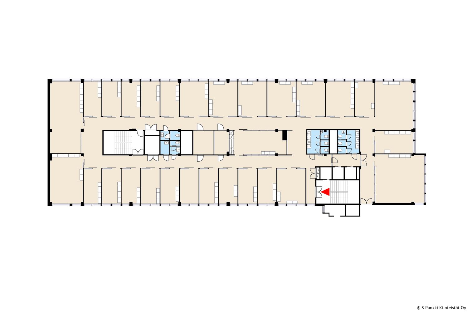 Mainio ylimmän kerroksen toimistohuoneisto Helsingin Lassilassa. Tähän toimitilaan on joustavasti muokattavissa yksilökohtaisia tilaratkaisuja ja se on tarpeen mukaan yhdistettävissä myös alemman kerroksen kanssa. Kahden kerroksen kokonaisuus käsittää noin 2500 neliötä, johon saa toteutustavasta riippuen työpisteet jopa 160 henkilölle.