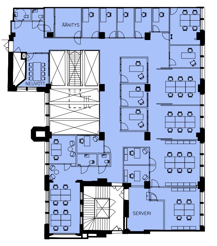 Vuokrattavana kolmannen kerroksen upeaa, valoisaa toimistotilaa..