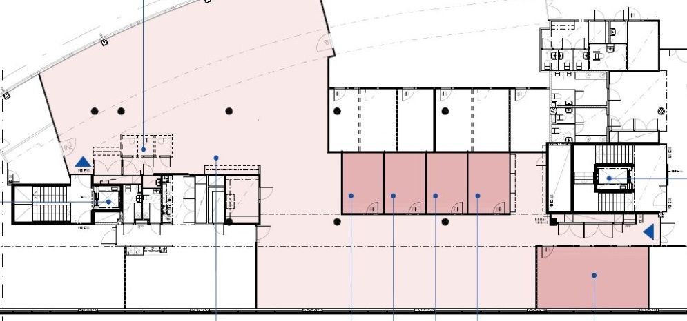 Nyt vapaana läpi talon kulkeva valoisa toimitila. Ikkunoita toimistossa on kahteen suuntaan ja iso avotilaa yhdistää monet työ- ja neuvotteluhuoneet. Lisäksi tilassa on oma keittiö ja wc-tilat.