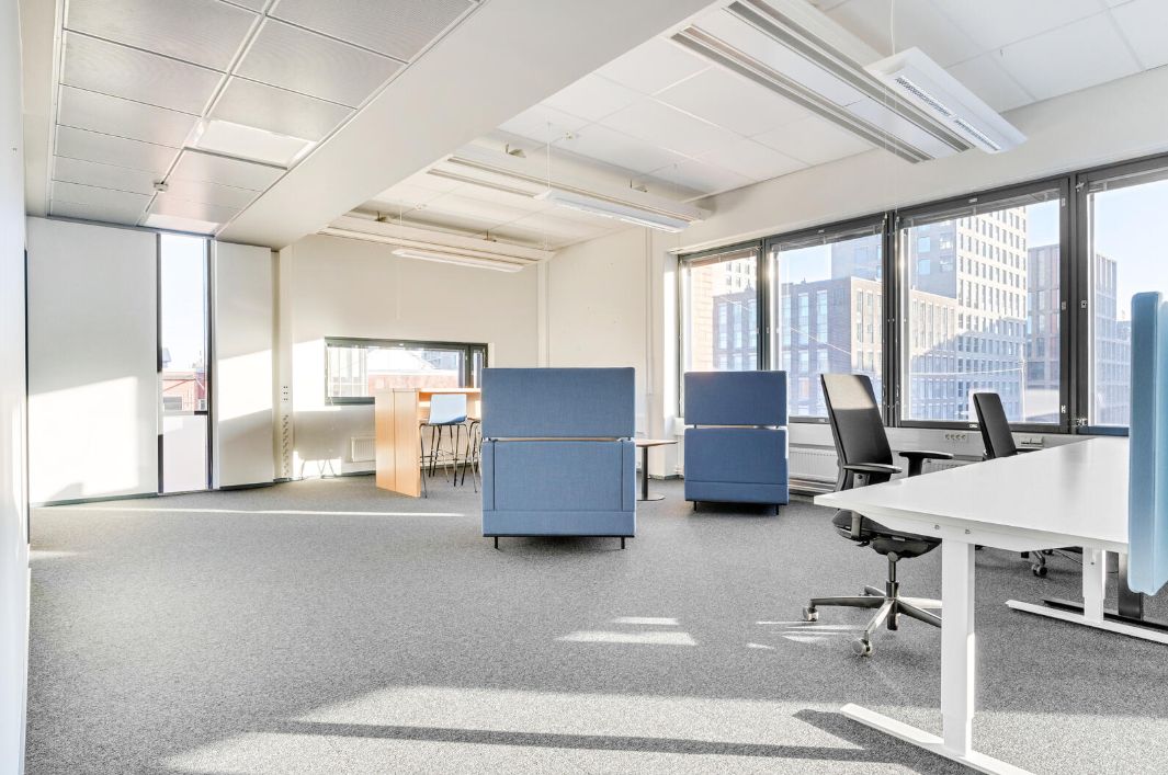 Hiljattain kokonaan remontoitu toimistotila 232,5 m2 Troolin D-rapussa. Tämän toimiston valoisaan monitilatoimistoon mahtuu kalustuksen toteutuksesta riippuen 18 työpistettä. Tilassa on 3 yhden hengen työhuonetta, tiimityötiloja ja neuvotteluhuone 9 hengelle. Toimiston keskiössä sijaitsevat tiimi- ja hiljaiset huoneet sekä lounge. Keittiö + taukotila sijaitsevat omassa rauhassaan, mutta keskeisellä paikalla. Lisäksi toimistossa on varasto/siivouskomero.
