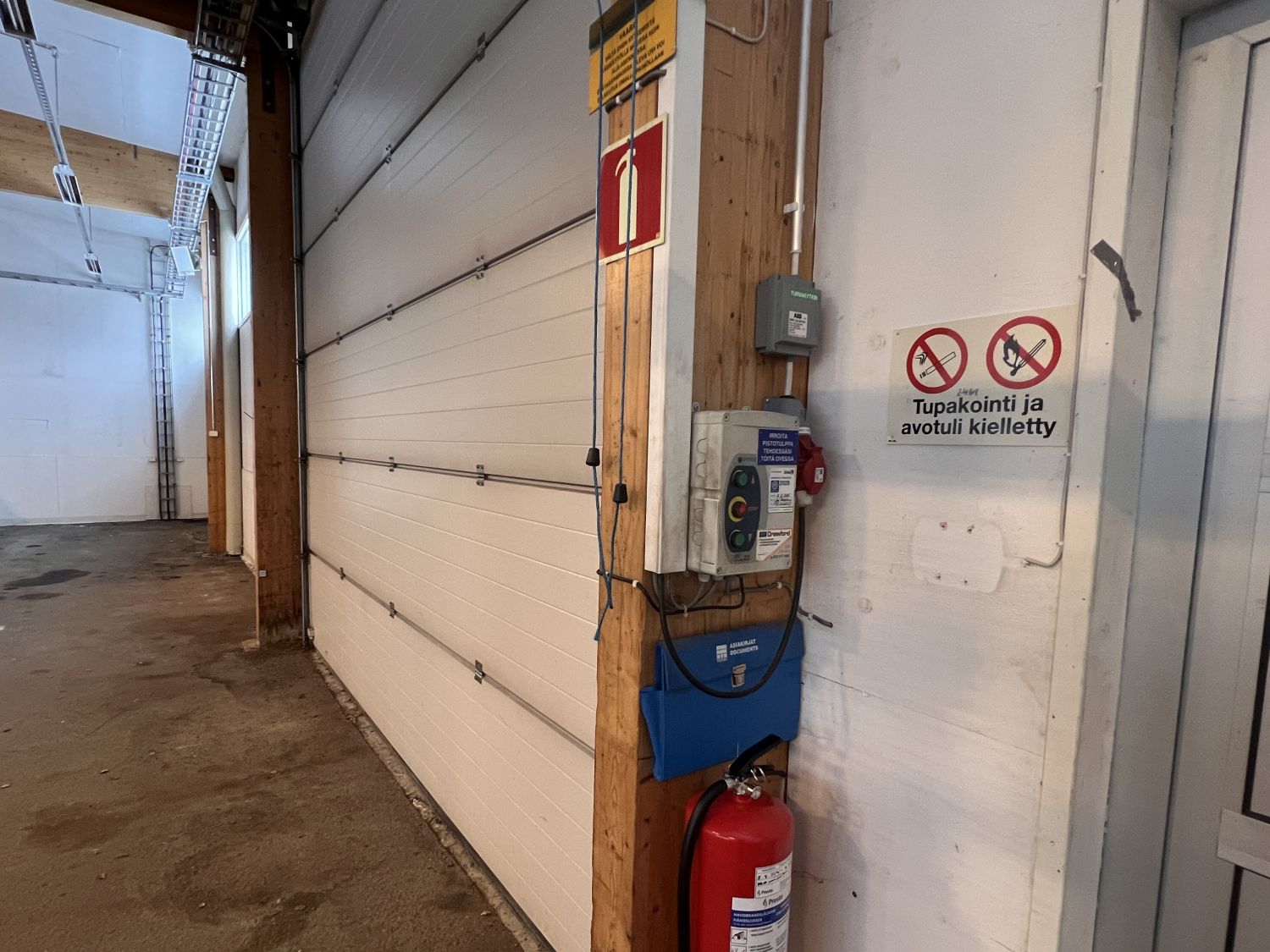 N.5m korkeaa hallitilaa, sähkölämmitteinen varastorakennus, asfalttilattia, nosto-ovi sähköllä 4,5mx4,5m, tarvittaessa toisesta hallista mahdollista saada 100m² lisää tilaa.