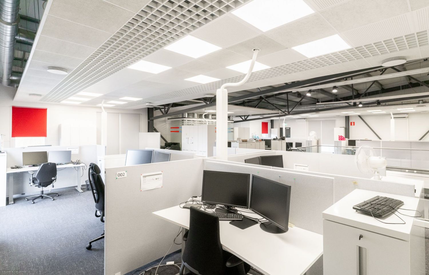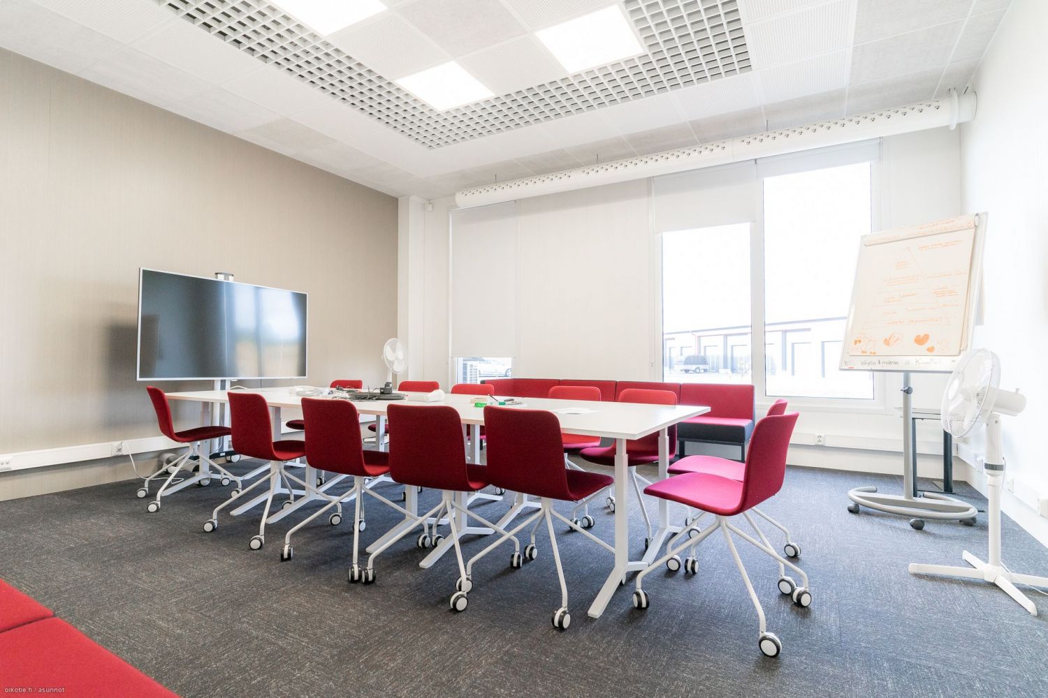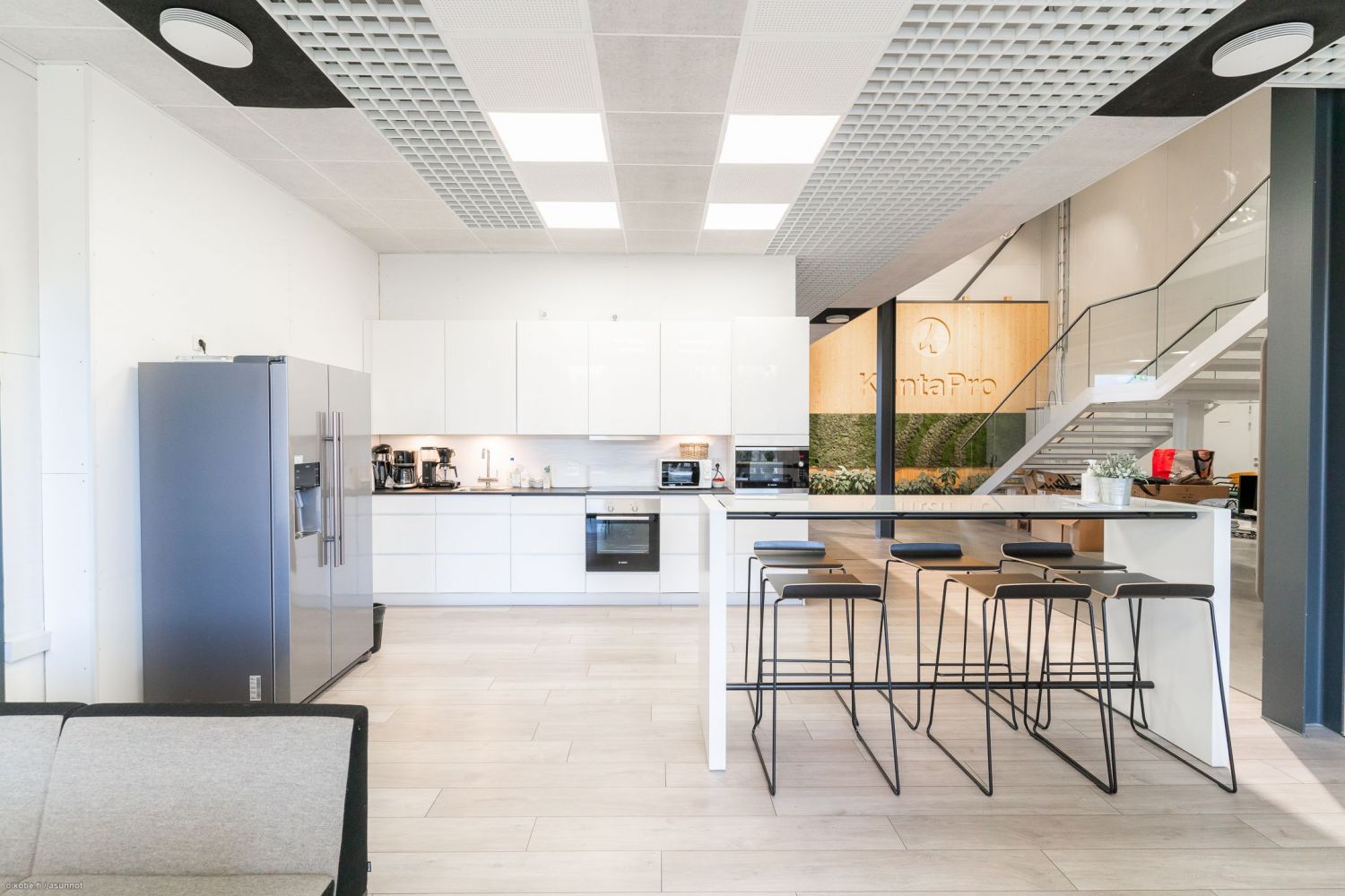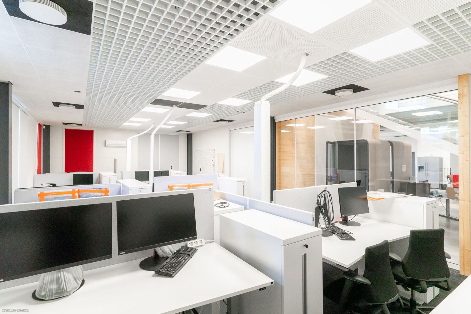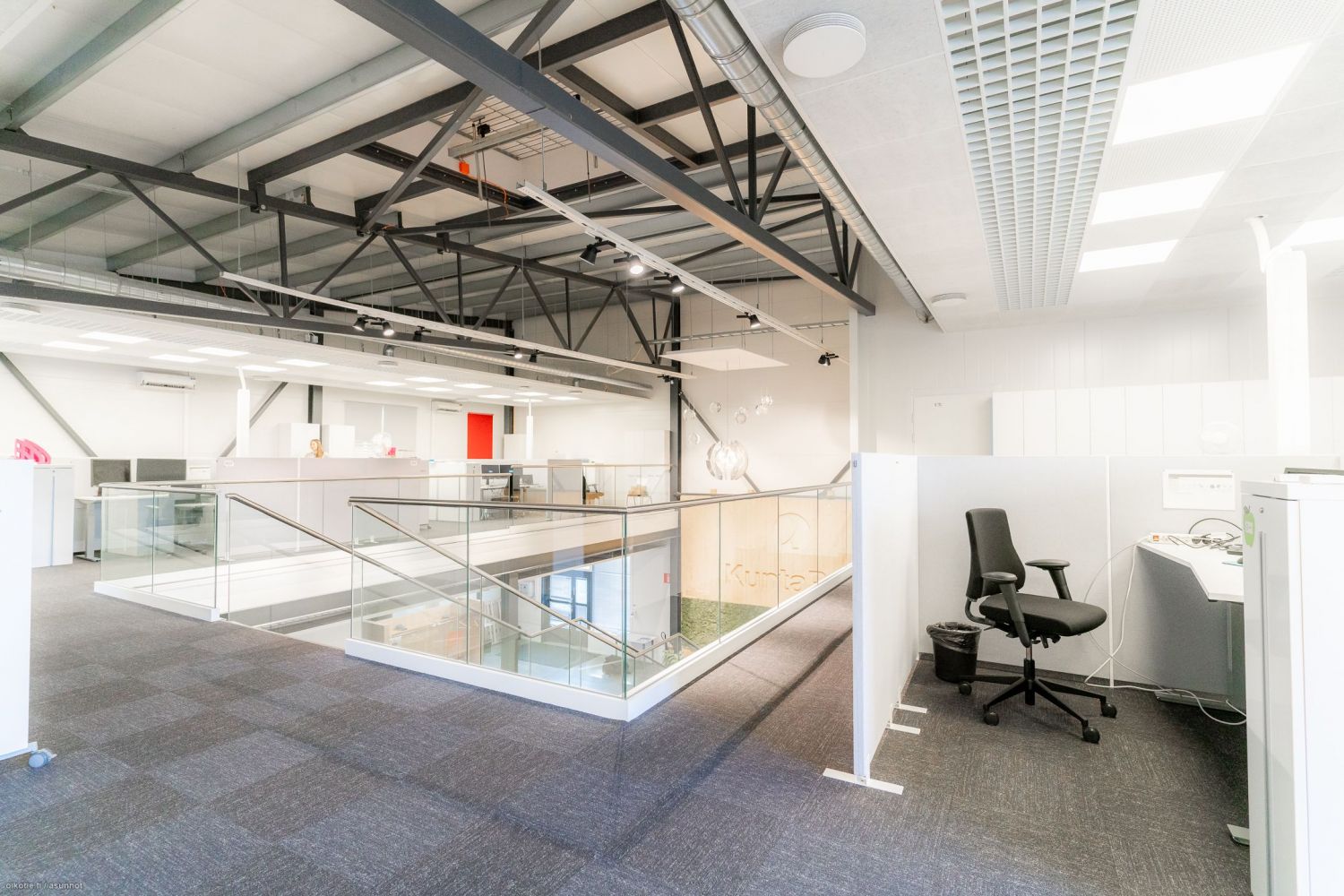 Avotilaa, 2 kpl neuvotteluhuoneita, keittiö ja taukotilat sekä 2 kpl wc /suihkutilat.