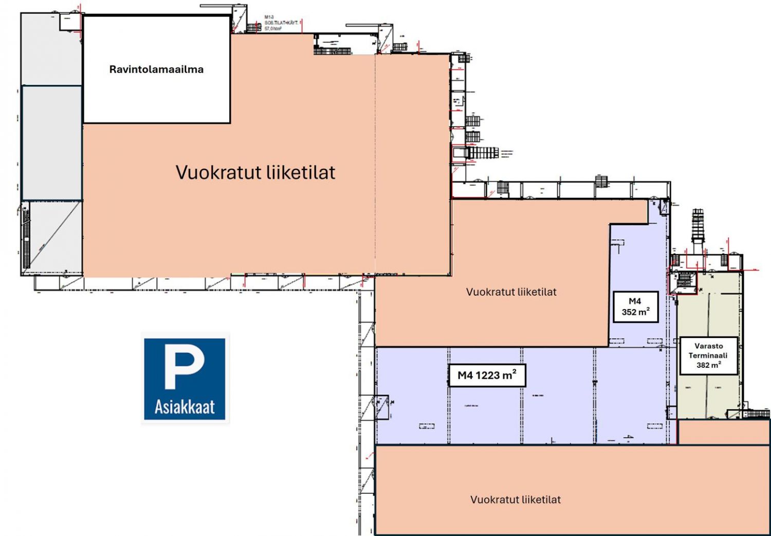 Tila M4 sisältää n. 1223 m² liiketilaa asiakaspalveluun