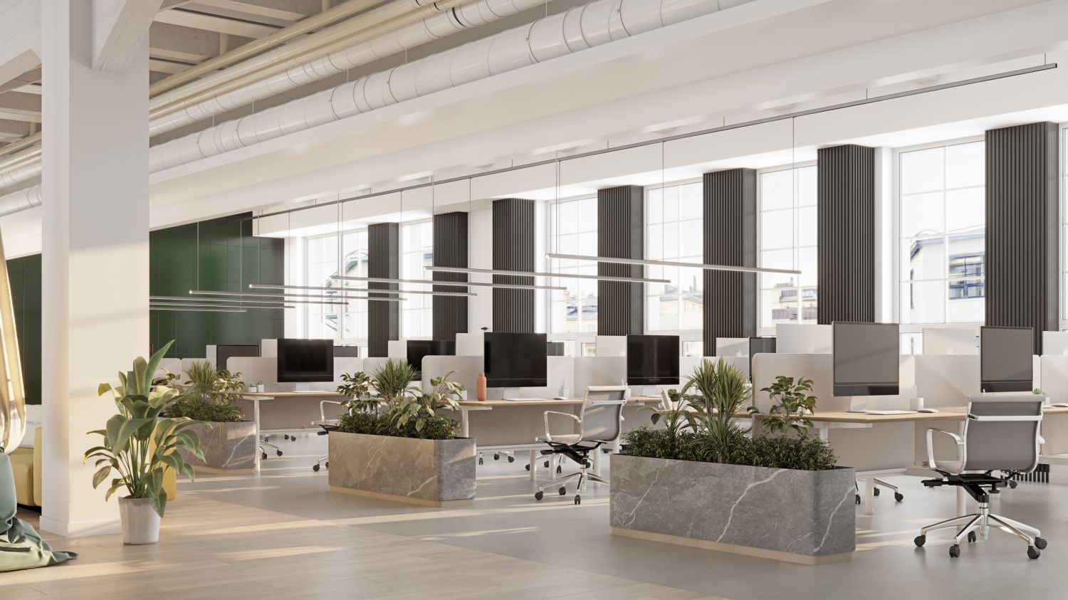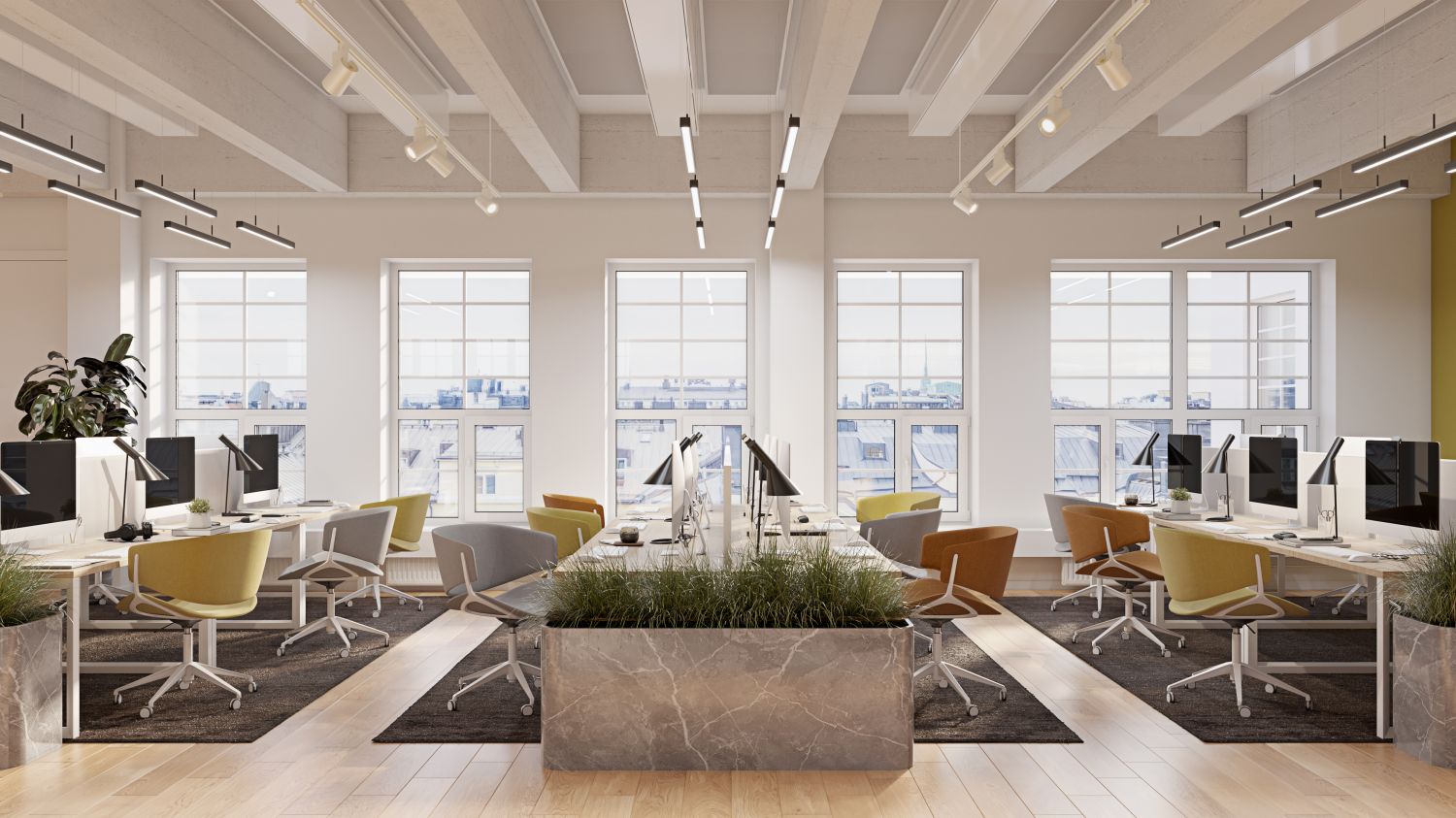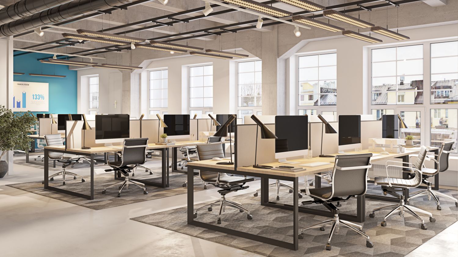 Valoisa ja hyväkuntoinen toimisto.